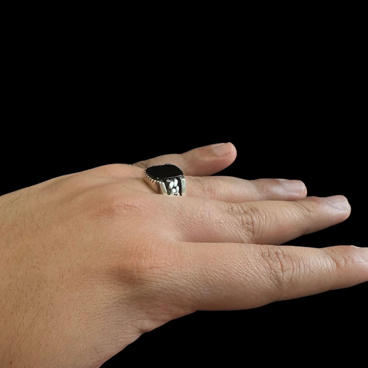 Elevate your style with our Silver Black Onyx Ring, a perfect blend of modern elegance and timeless sophistication. This exquisite ring features a captivating black onyx gemstone, known for its deep, mesmerizing hue and symbolic strength. Crafted from premium 925 sterling silver, the band provides a striking contrast to the dark gemstone, highlighting its natural beauty. The sleek design of the ring ensures versatility, making it an ideal accessory for both everyday wear and special occasions. Whether you’re looking to make a bold statement or seeking a unique gift for a loved one, our Silver Black Onyx Ring is a testament to refined taste and classic elegance. Add a touch of mystery and sophistication to your jewelry collection with this stunning piece.