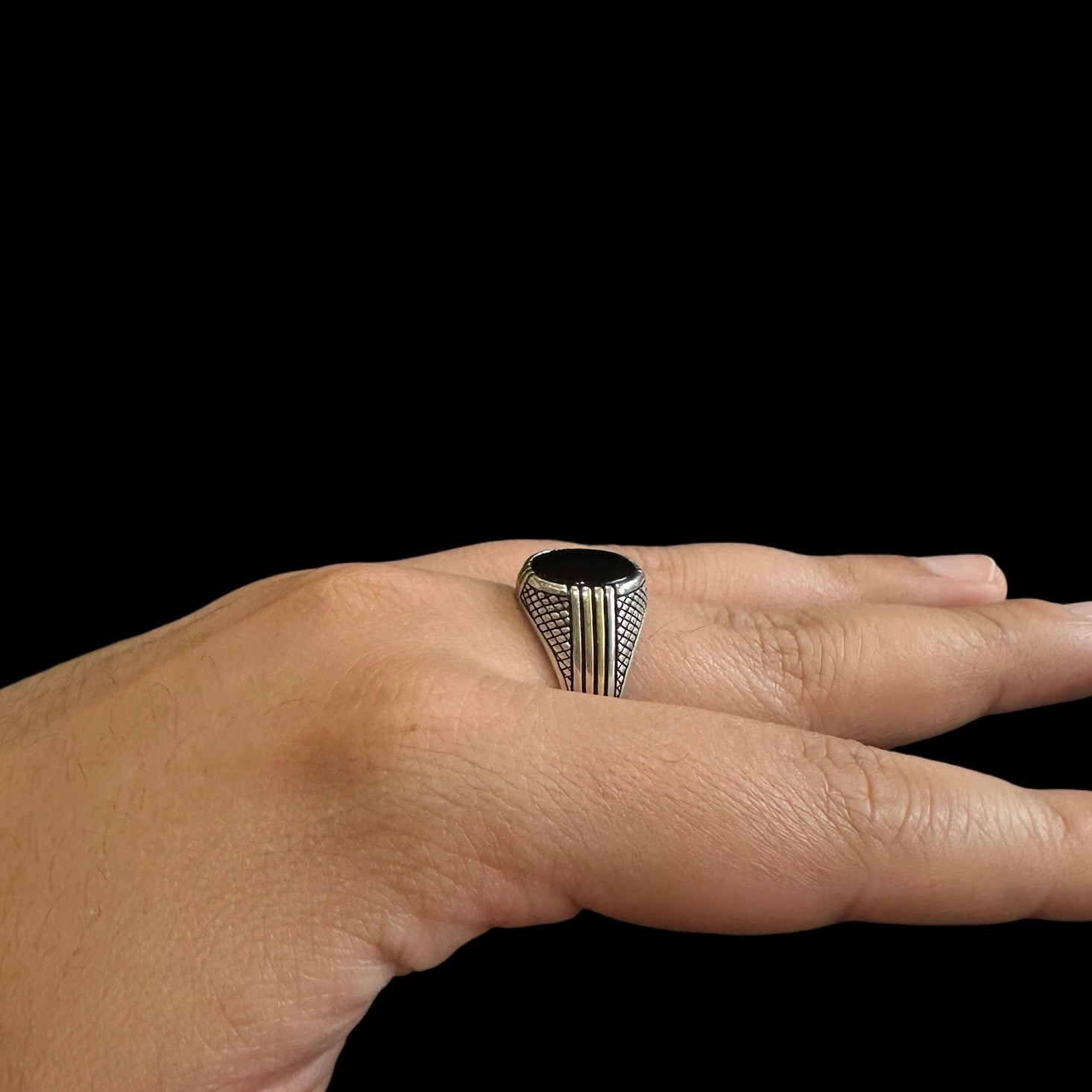 Experience the allure of timeless craftsmanship with our Silver Turkish Black Onyx Ring. Handcrafted by skilled artisans in Turkey, this exquisite ring features a bold black onyx gemstone, known for its deep, mesmerizing color and symbolic strength. Set in premium 925 sterling silver, the band is adorned with intricate Ottoman-inspired filigree detailing, reflecting the rich cultural heritage and exceptional artistry of Turkish jewelry design. The striking contrast between the dark onyx and the lustrous silver creates a piece that is both elegant and powerful, perfect for any occasion. Whether you’re seeking a statement accessory or a meaningful gift, our Silver Turkish Black Onyx Ring is a testament to refined taste and enduring style. Add a touch of sophistication and heritage to your collection with this extraordinary piece.