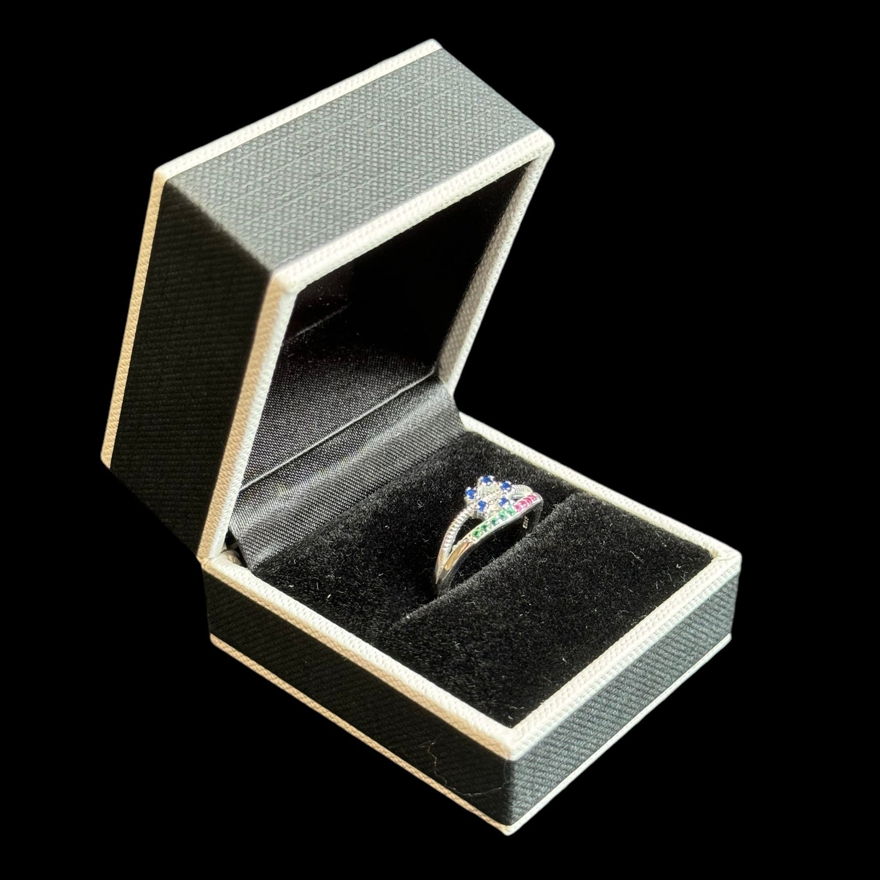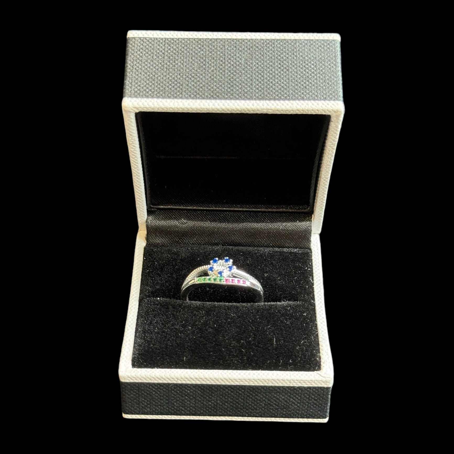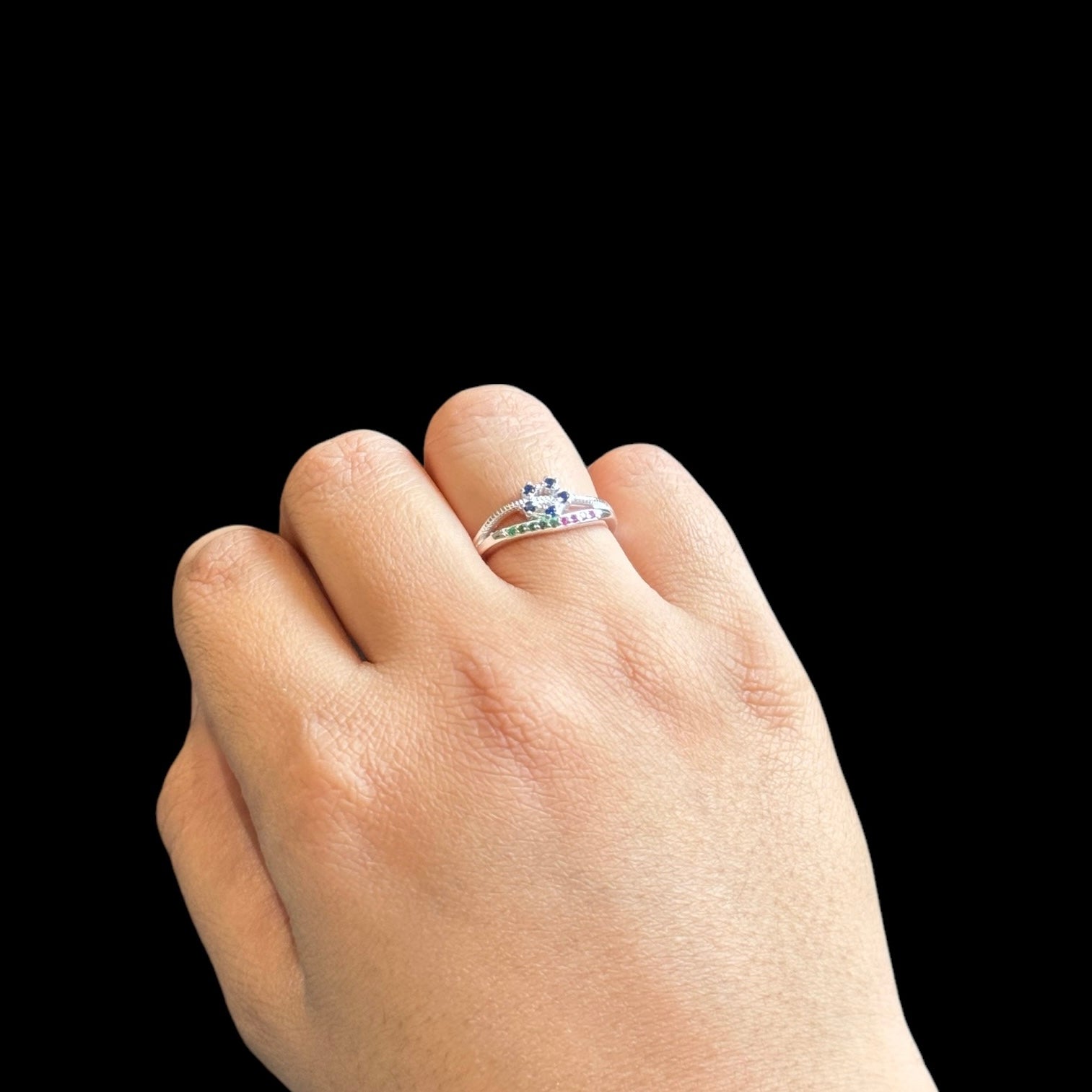 This multi-gemstone 925 sterling silver ring is a vibrant and elegant piece, featuring an array of beautifully colored gemstones set in a high-quality sterling silver band. The 925 sterling silver, known for its durability and luster, forms a sleek and polished base that complements the rich hues of the gemstones. Each gemstone, carefully cut and set to maximize its brilliance, ranges in color from deep blues and greens to fiery reds and golden yellows, creating a stunning rainbow effect.