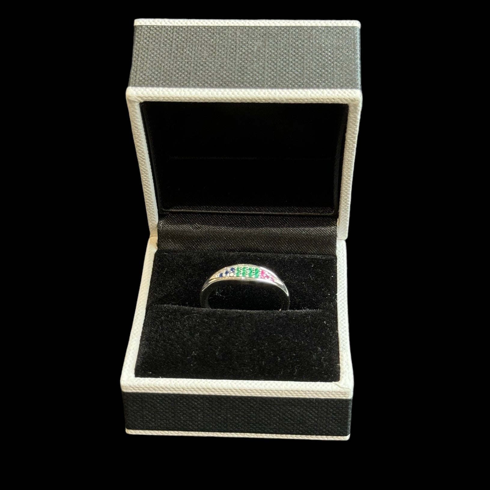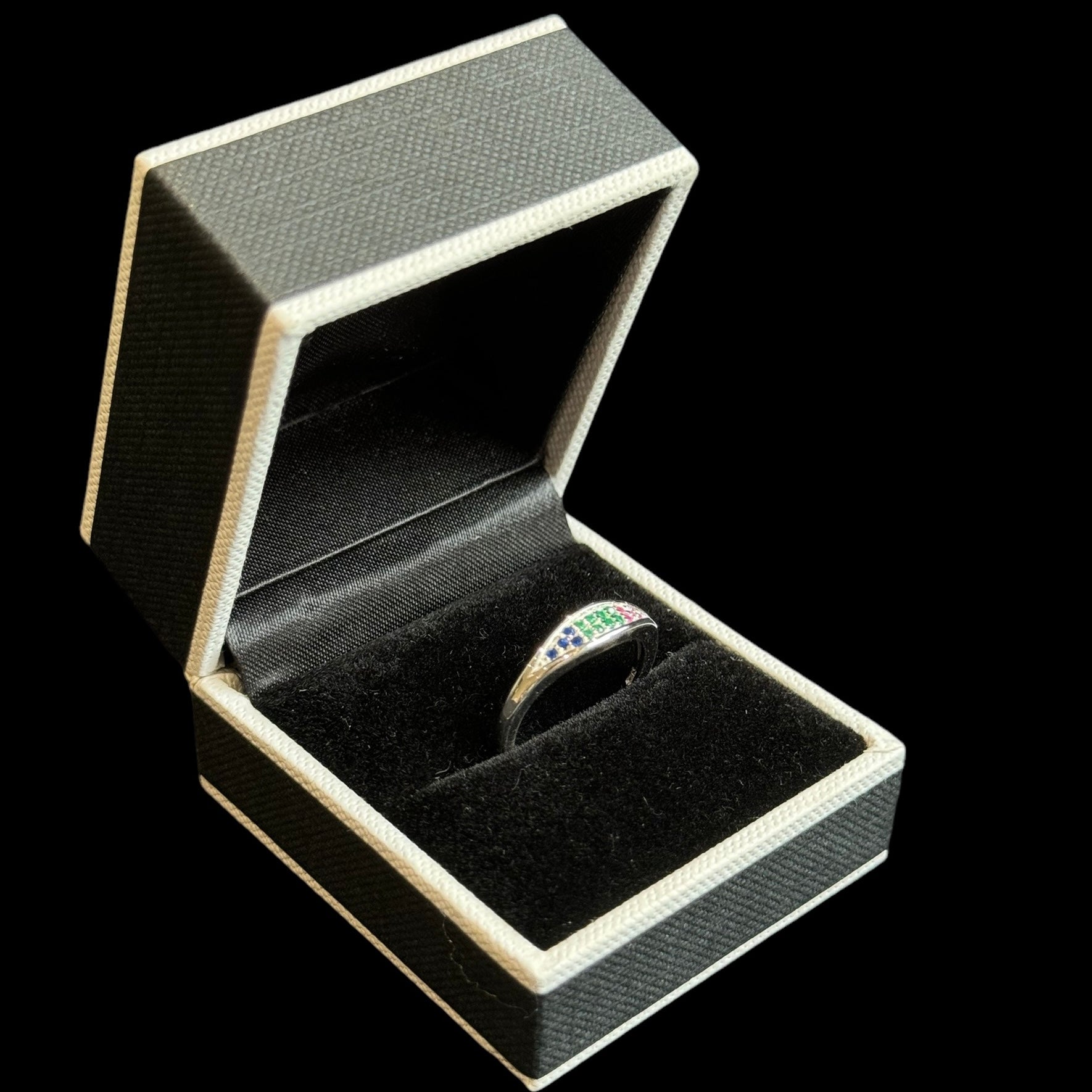 This multi-gemstone 925 sterling silver ring is an eye-catching piece, crafted to bring together the timeless elegance of sterling silver with the vibrant allure of a colorful gemstone array. The ring features a diverse selection of lab-created or natural gemstones, ranging from the deep blue of sapphires and the lush green of emeralds to the fiery red of rubies and the golden glow of citrine, all set harmoniously within the lustrous silver band.