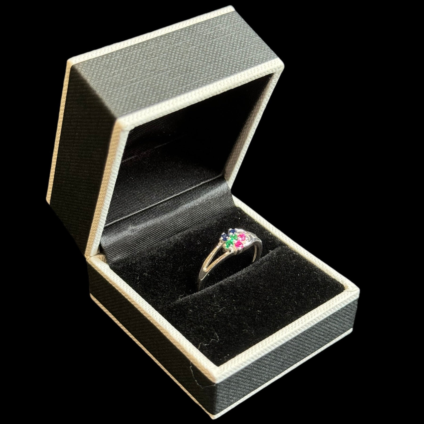 This multi-gemstone ring is perfect for adding a splash of color to any outfit, whether for casual wear or formal occasions. Its timeless design and vibrant stones make it a versatile accessory and a thoughtful gift for someone who appreciates both beauty and quality craftsmanship.