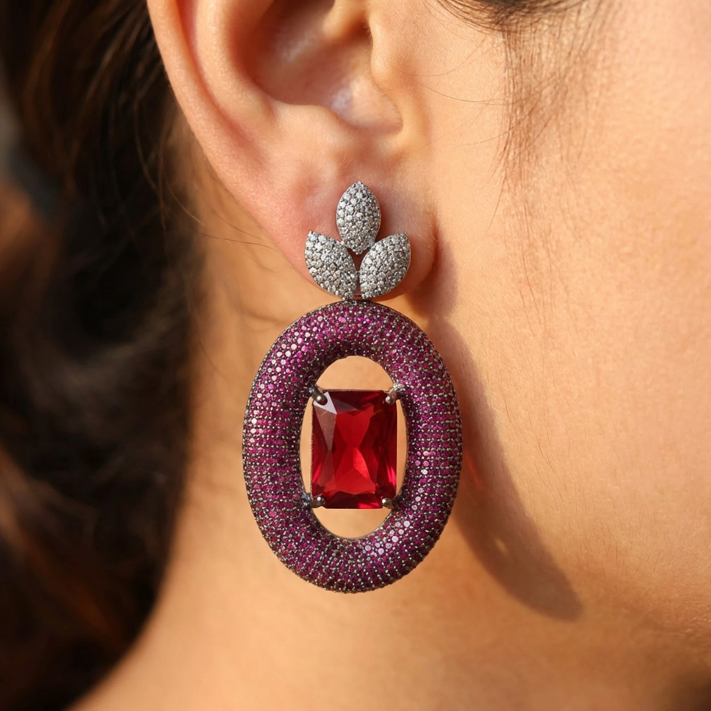 Introducing Dazzling piece featuring Rubies (lab made) & Finest Cubic Zirconia studded Earrings.