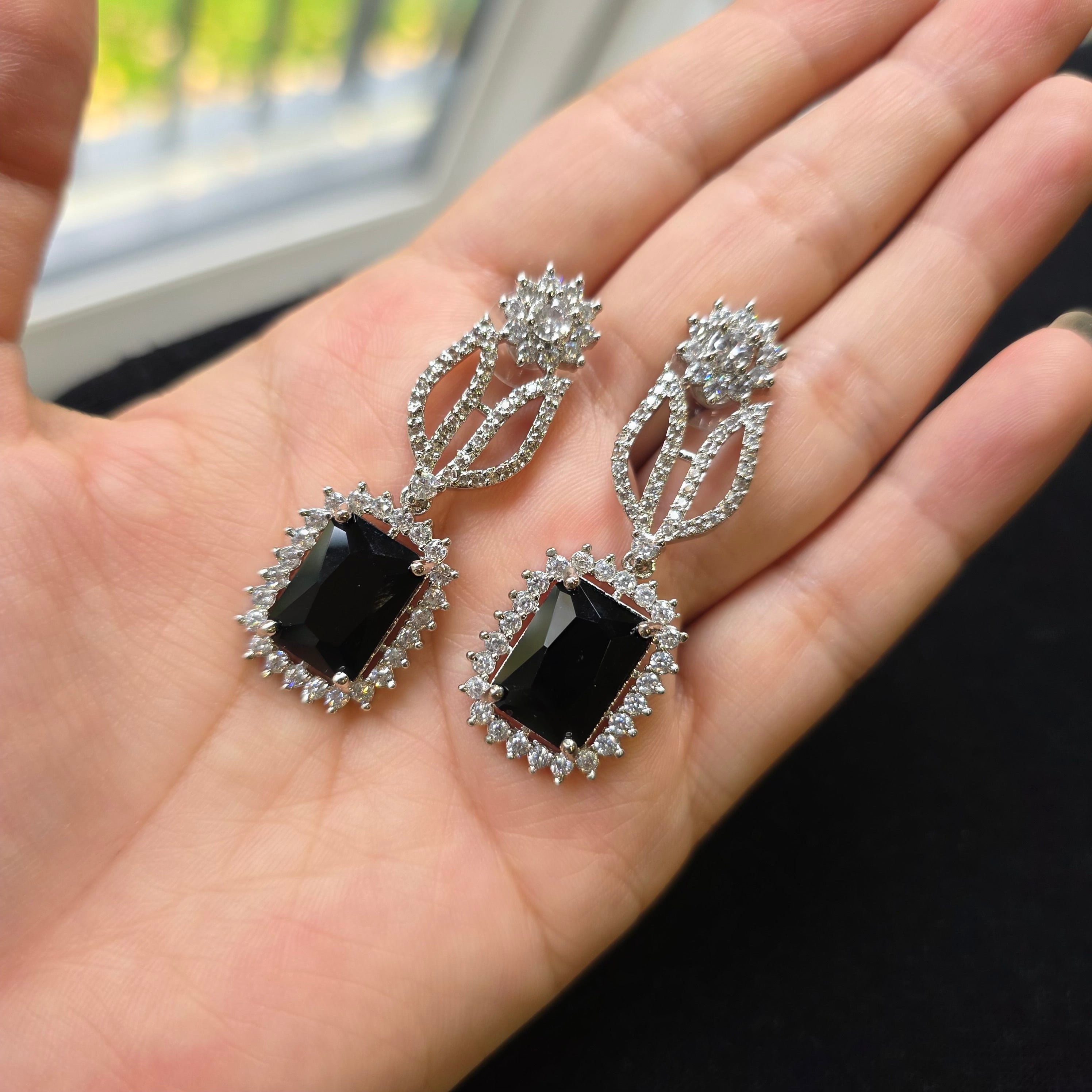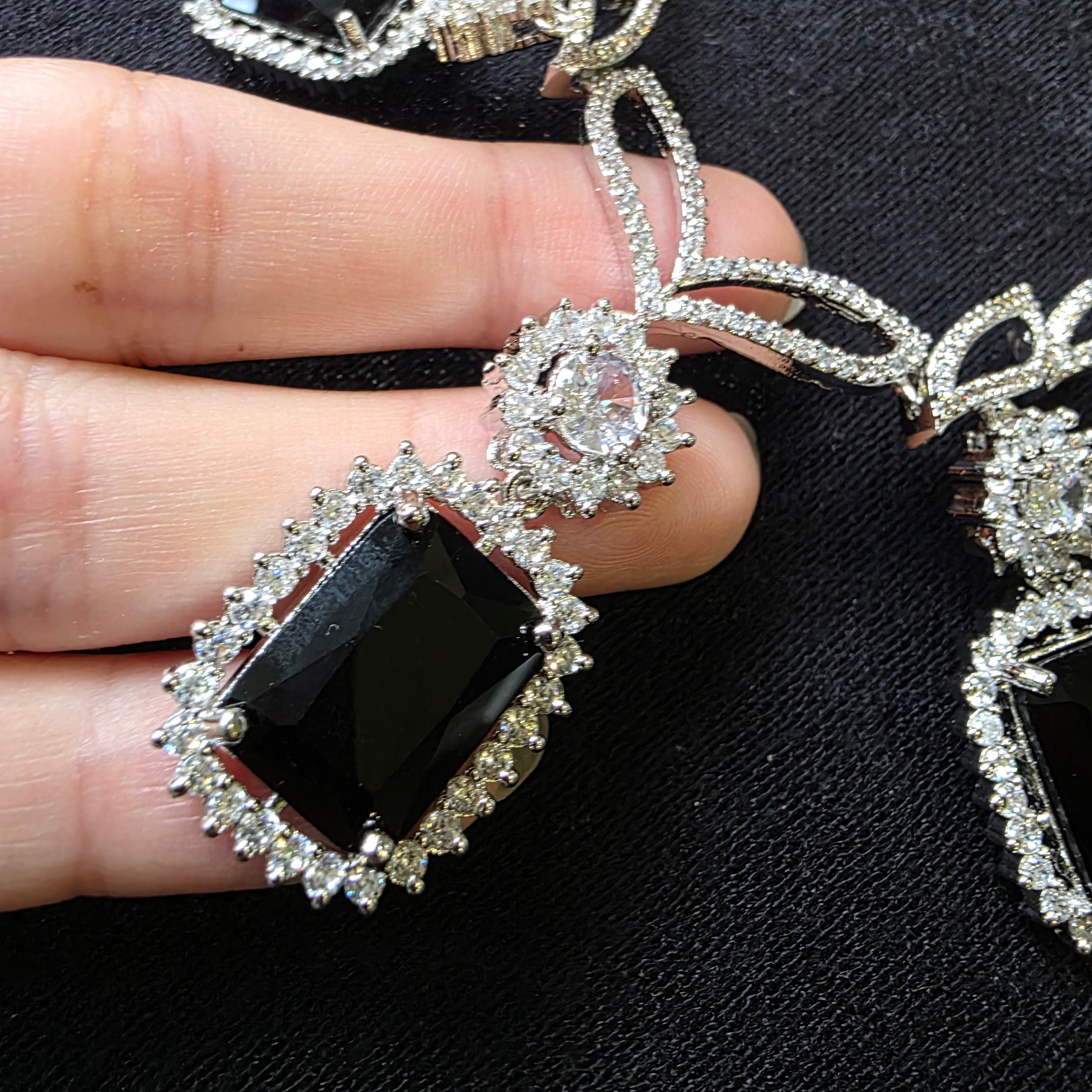 This Lab-Made Black Quartz Necklace Set is a striking blend of elegance and sophistication. Featuring deep, mystical black quartz stones, the set is beautifully accented with brilliant-cut cubic zirconia for a dazzling contrast. The white gold plating adds a touch of luxury, enhancing the overall brilliance and durability of the design. The necklace showcases a bold black quartz centerpiece, while the matching earrings complete the refined look. Perfect for formal events, evening wear, or special occasions, this set is also hypoallergenic and lightweight, ensuring comfort and long-lasting wear. A perfect choice for those who appreciate timeless glamour with a modern edge.