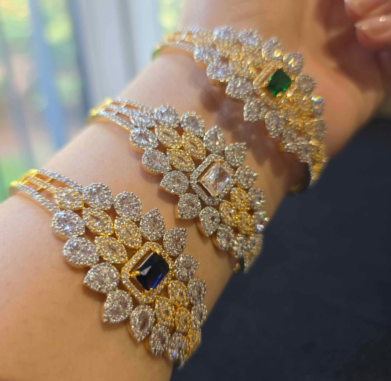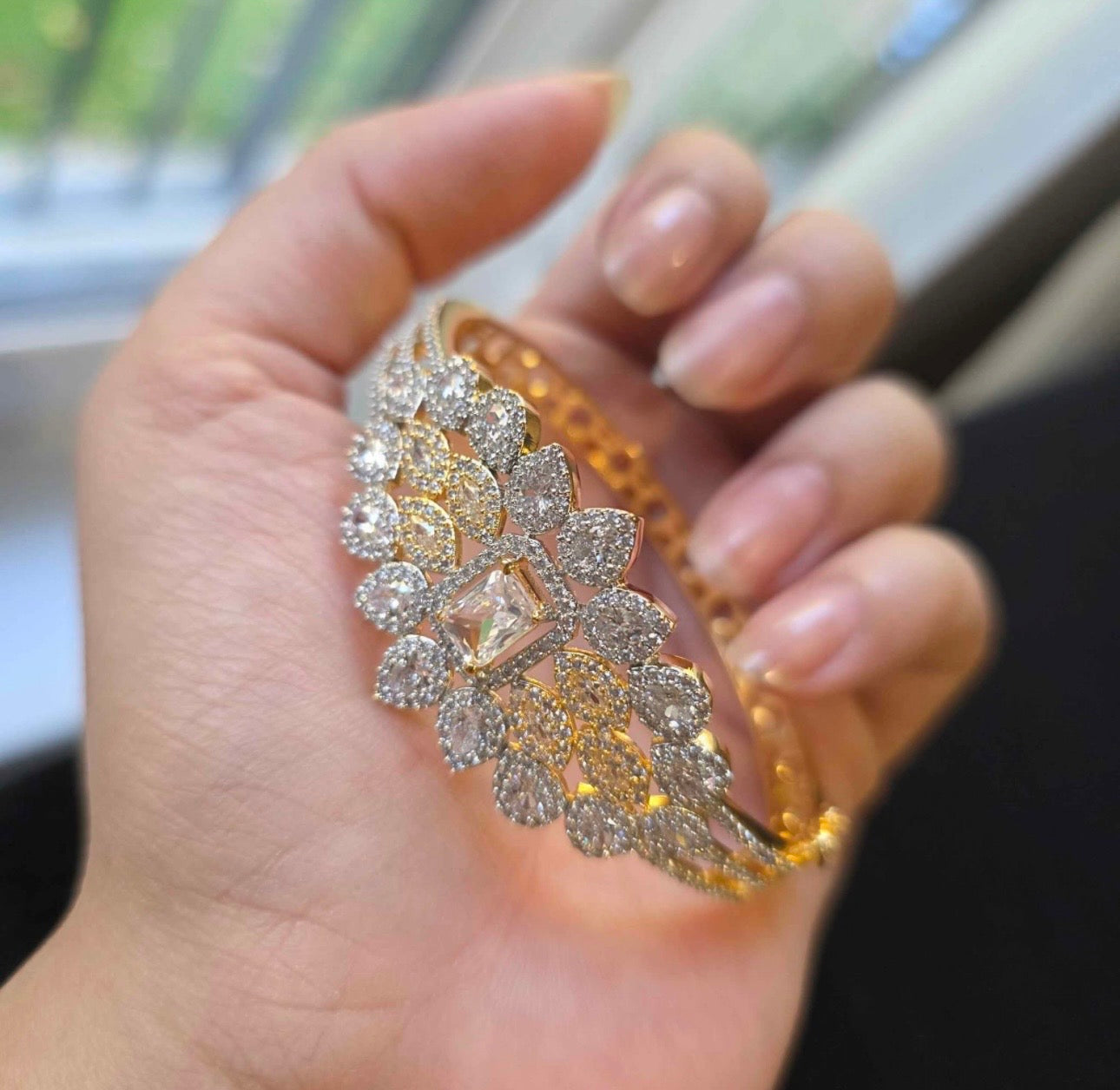 Elevate your style with this elegant openable bangle, beautifully crafted and finished with luxurious yellow gold plating. Its warm, radiant glow enhances the overall design, giving it a classic yet contemporary appeal. Sparkling cubic zirconia stones are delicately set along the bangle, offering a brilliant, diamond-like shine that catches the light with every movement.