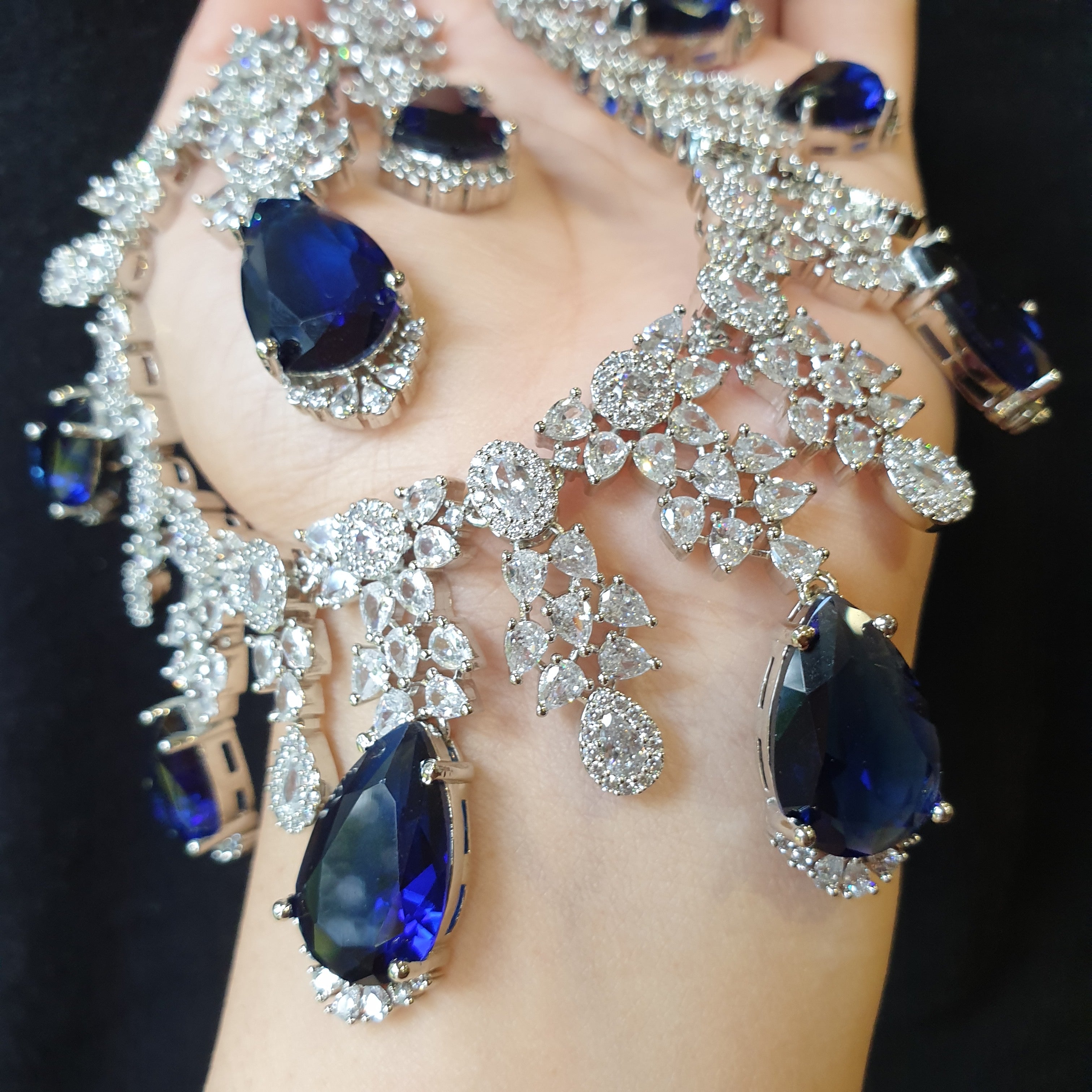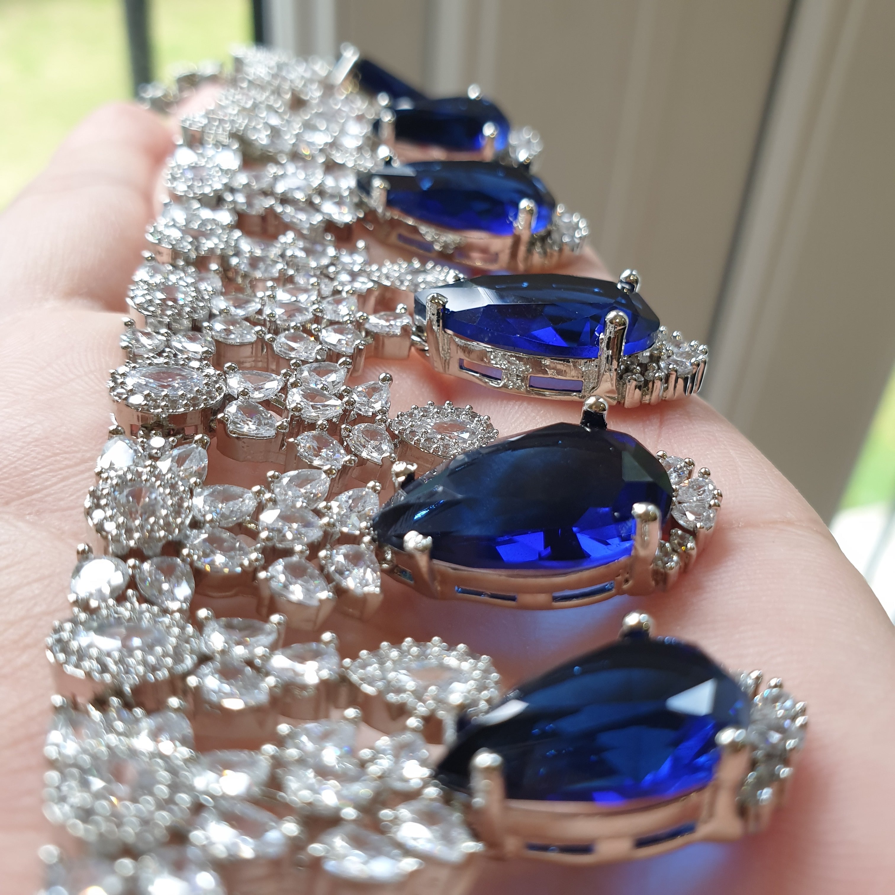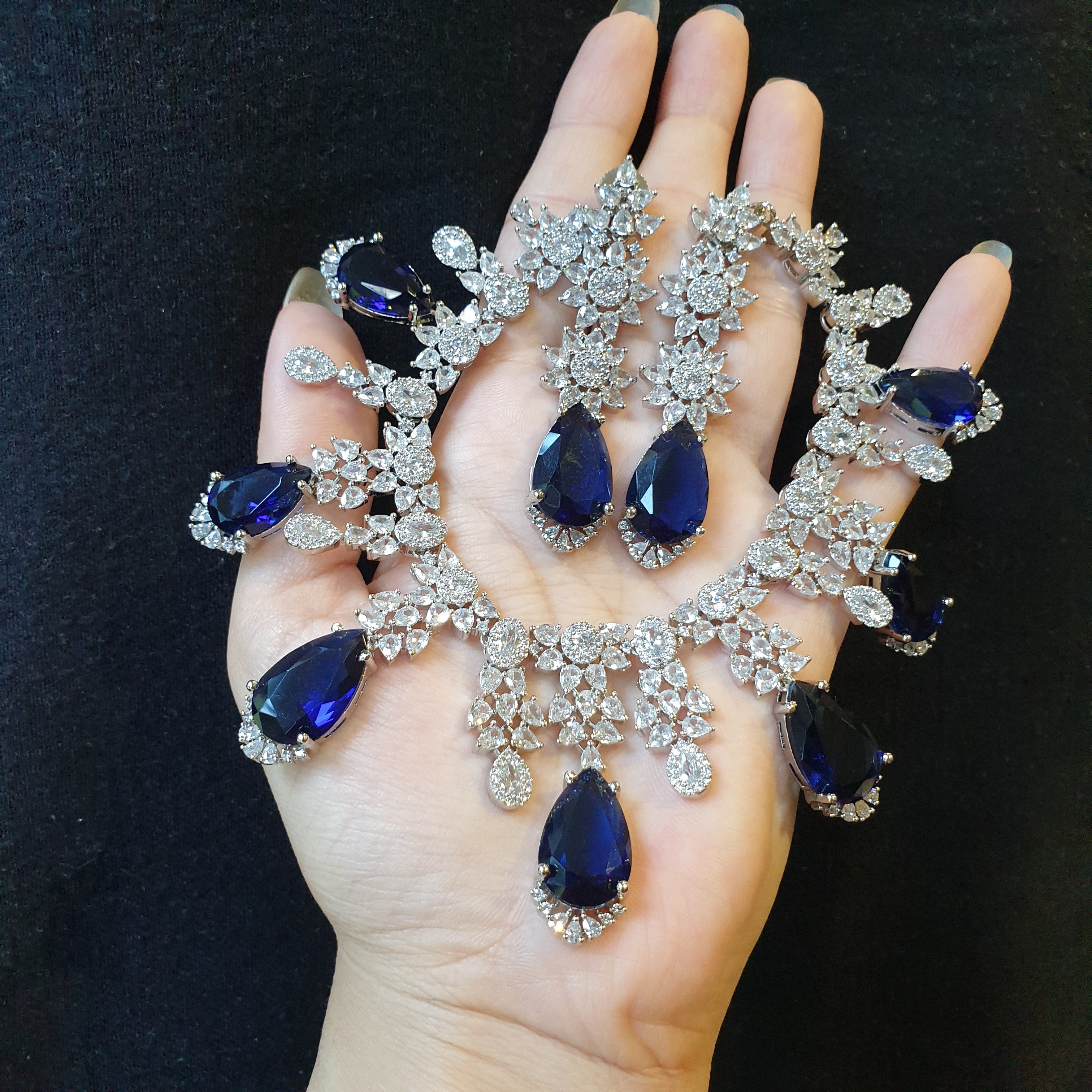 Make a statement of timeless elegance with this exquisite lab-created blue sapphire necklace set, accented with sparkling cubic zirconia for a touch of brilliance. The deep royal blue sapphire symbolizes wisdom and loyalty, while the halo of shimmering zirconia enhances its luxurious appeal.