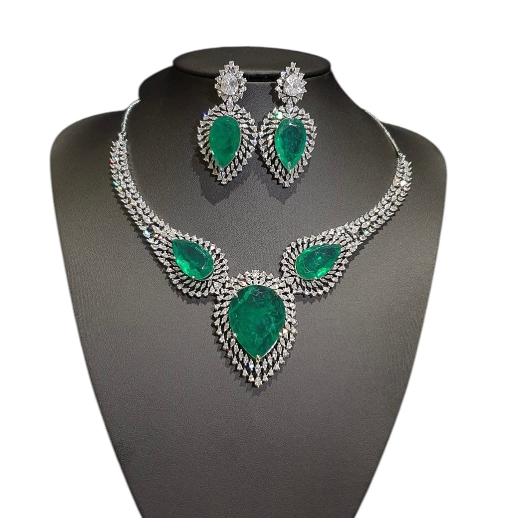 Indulge in timeless elegance with this lab-grown emeralds necklace and earrings set, featuring exquisite lab-created emeralds accented by shimmering cubic zirconia, all beautifully crafted with a white gold-plated finish.