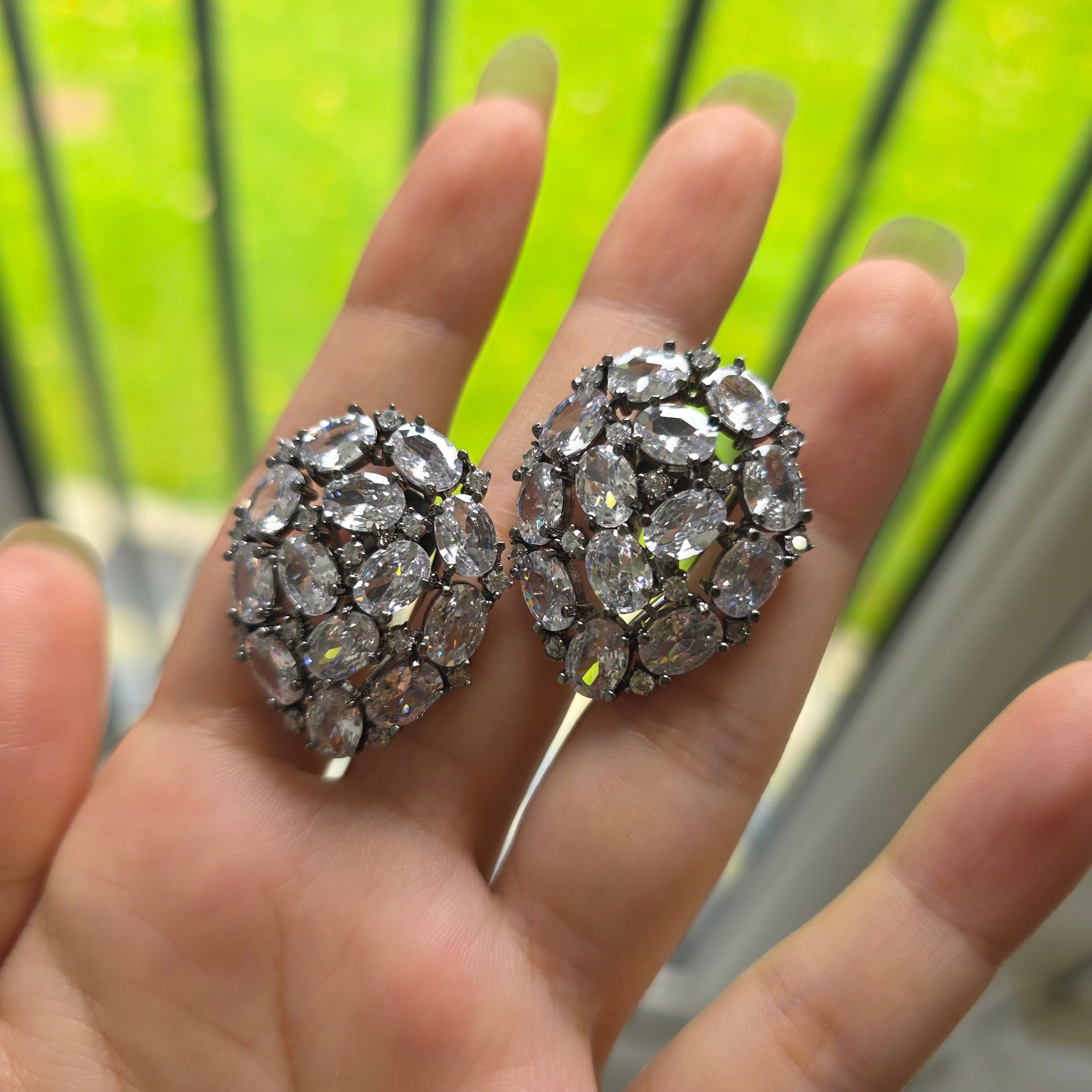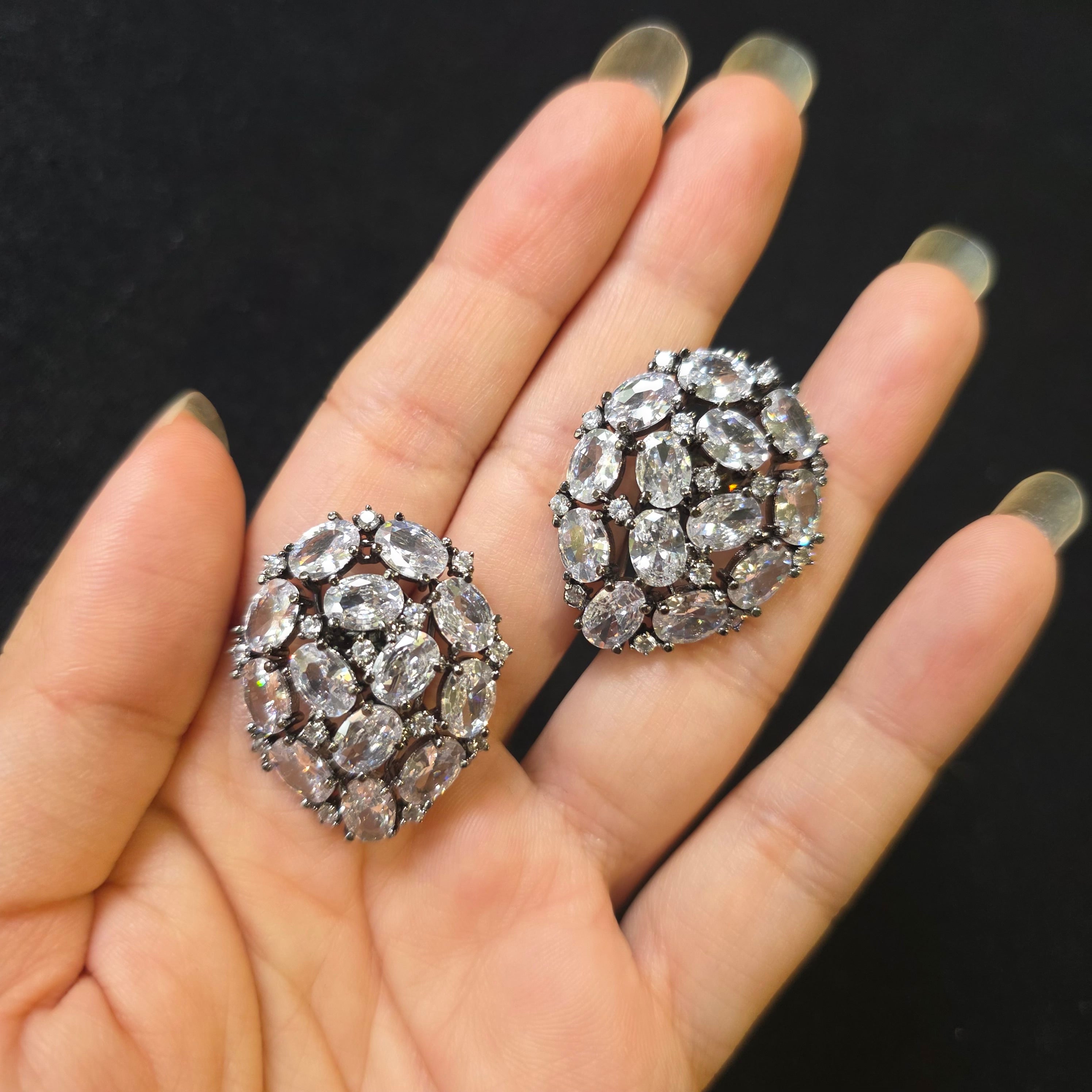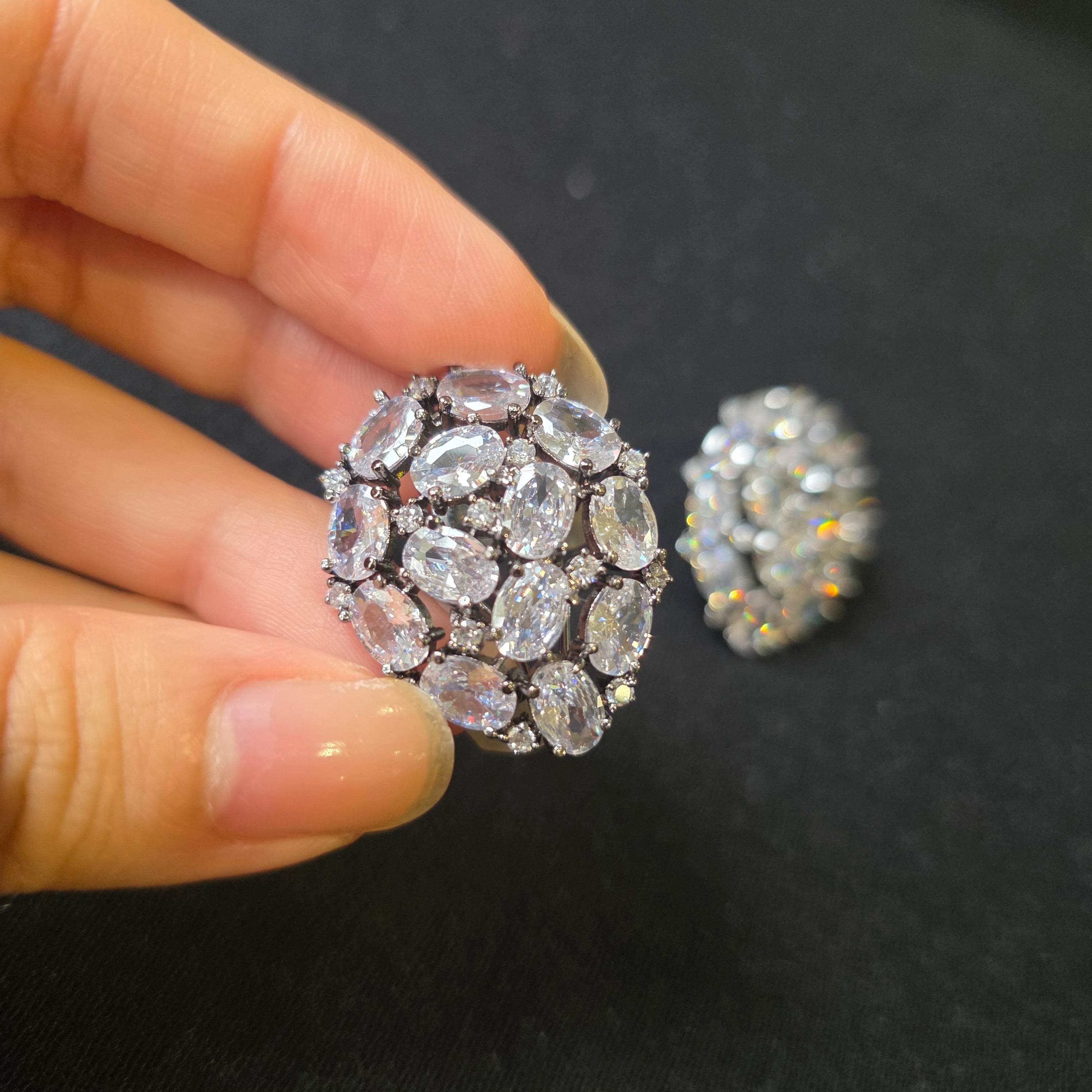 The earrings are white gold plated, providing a sleek and modern finish that enhances the beauty of the stones while ensuring durability and a luxurious appeal.