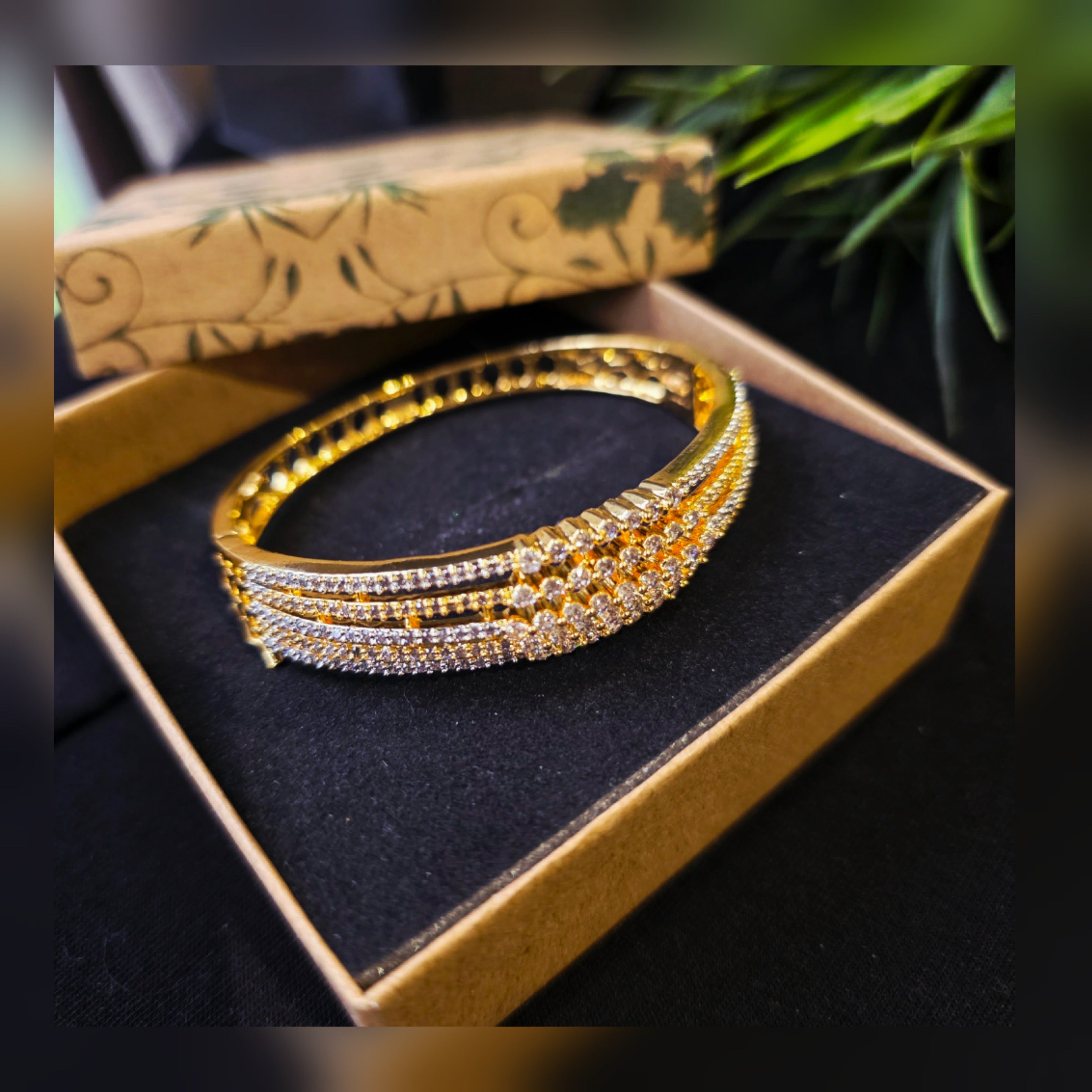 This Brand new exquisite piece featuring brilliant Cubic Zirconia studded layered style openable bangle.