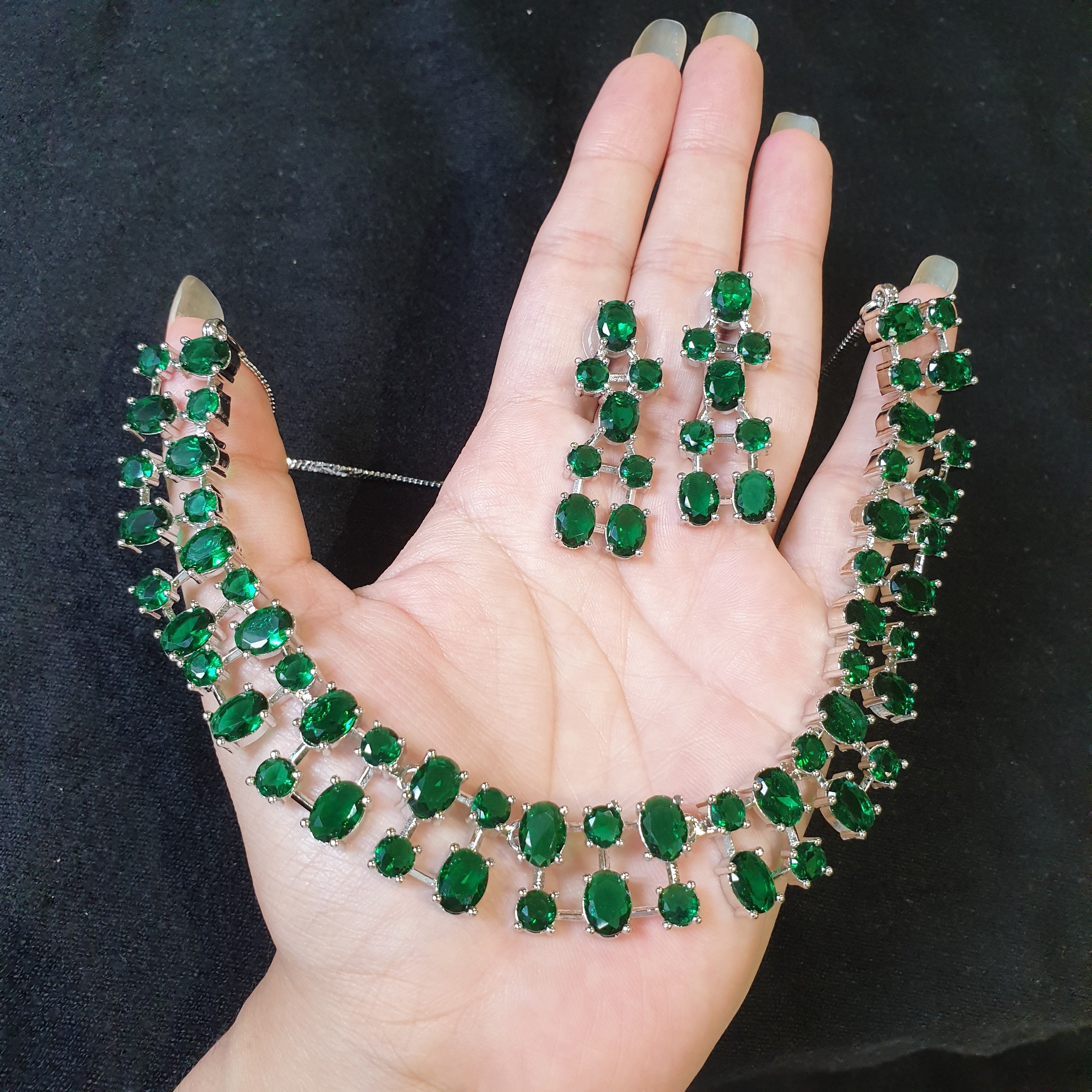 Elevate your style with the captivating beauty of this elegant necklace set. Featuring brilliant lab-grown emeralds, each piece radiates a rich, vibrant green hue that symbolizes love, renewal, and timeless elegance. Surrounding each emerald are sparkling cubic zirconia accents, adding brilliance and sophistication to the design.