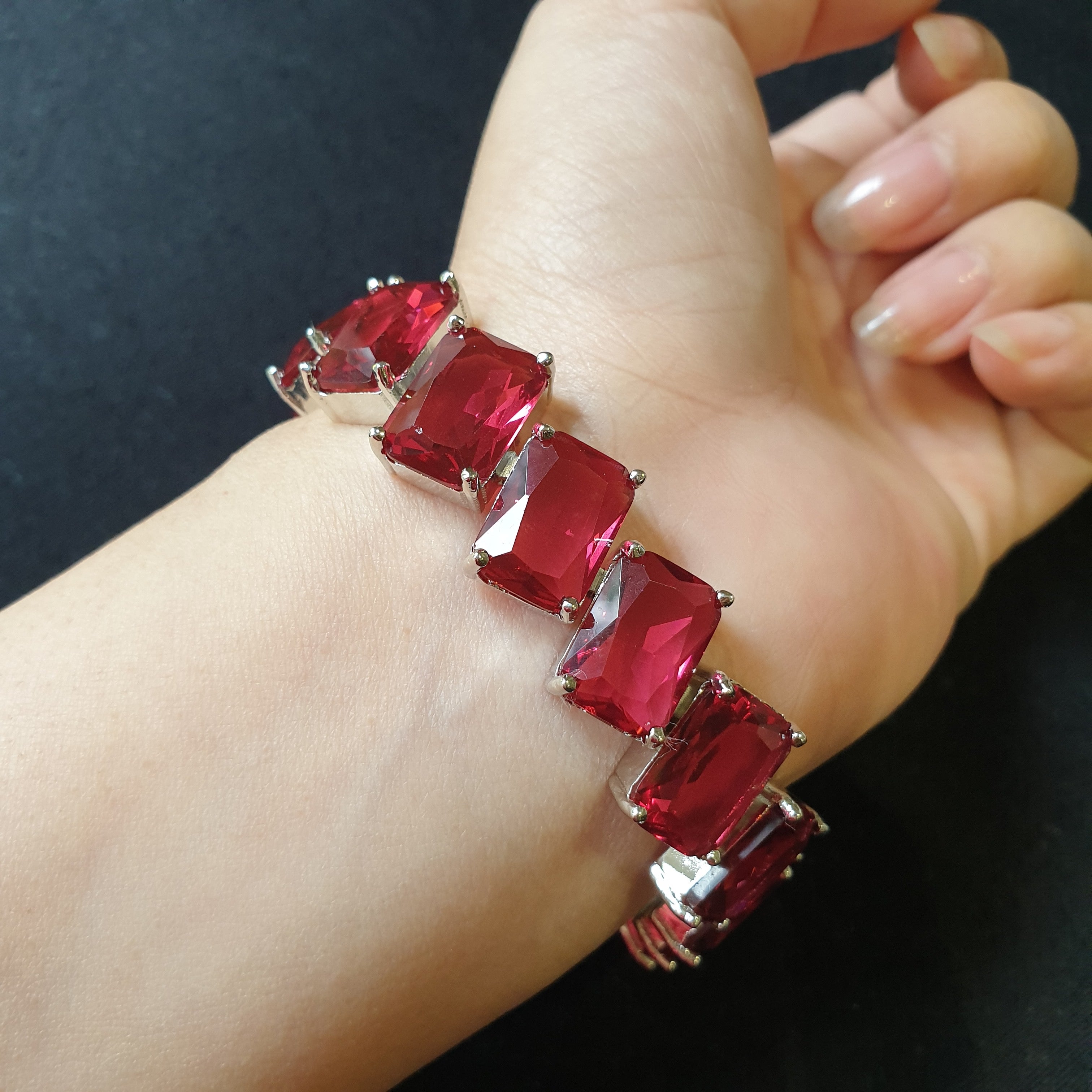 White Gold and Rhodium Plated Bracelet with Garnets and Cubic Zirconia.