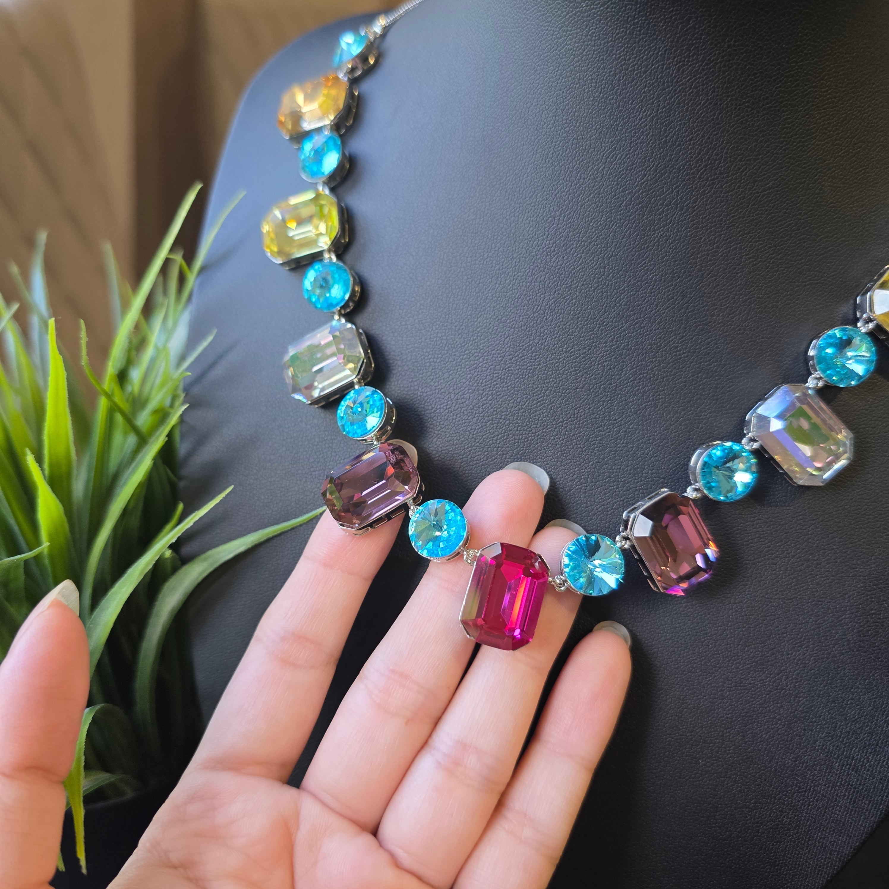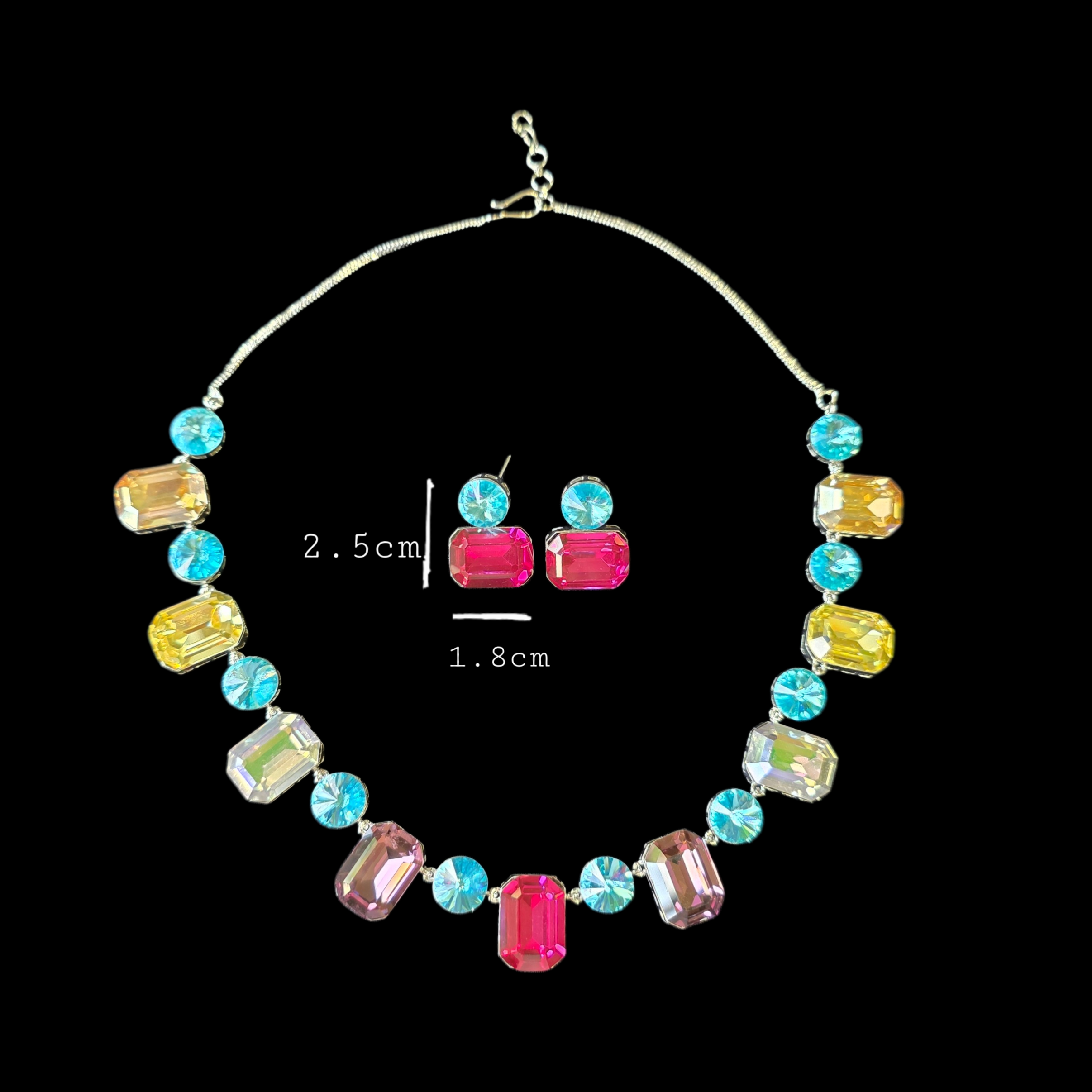 Introducing Collet Necklace Set with Swarovski Stones Necklace paired with matching Earrings.