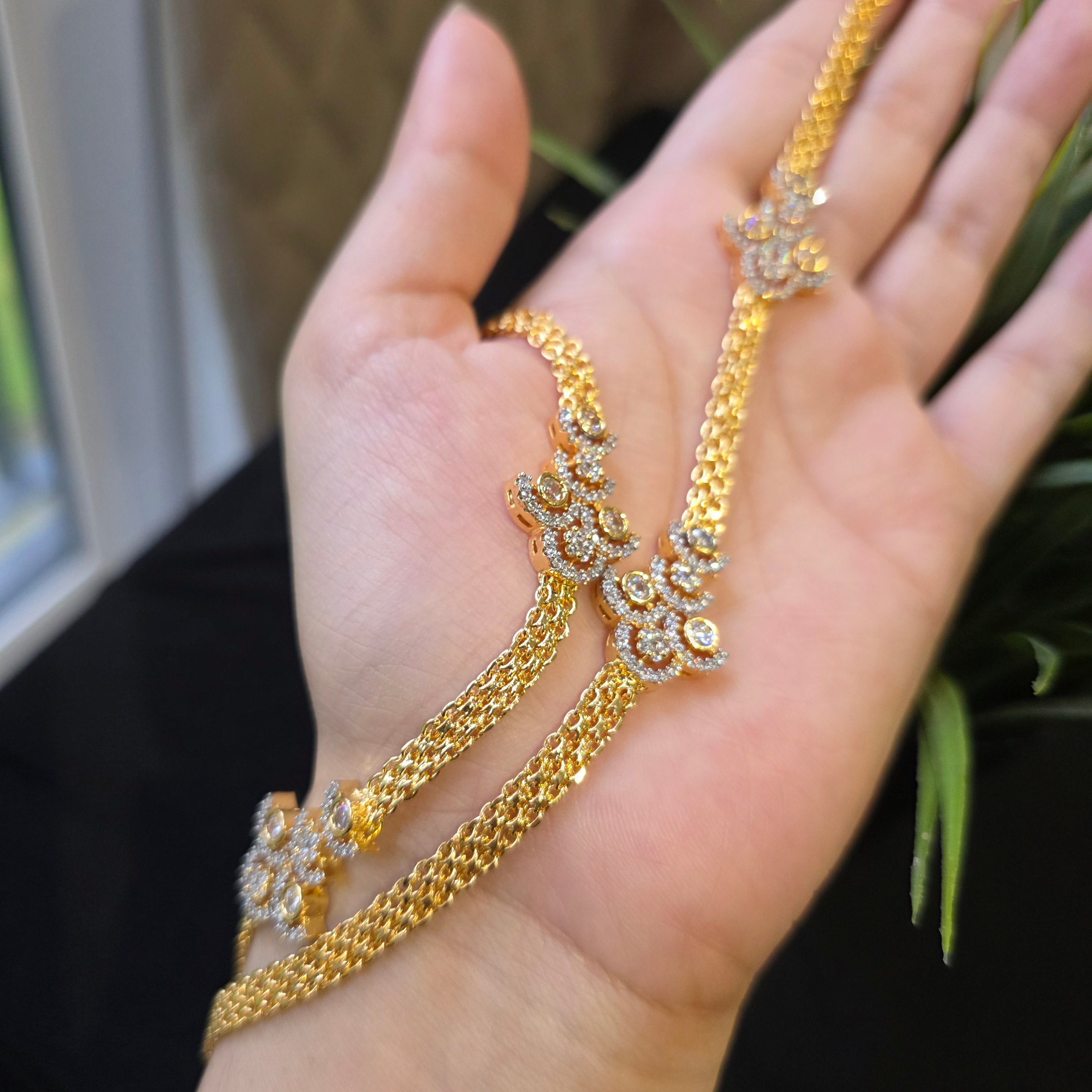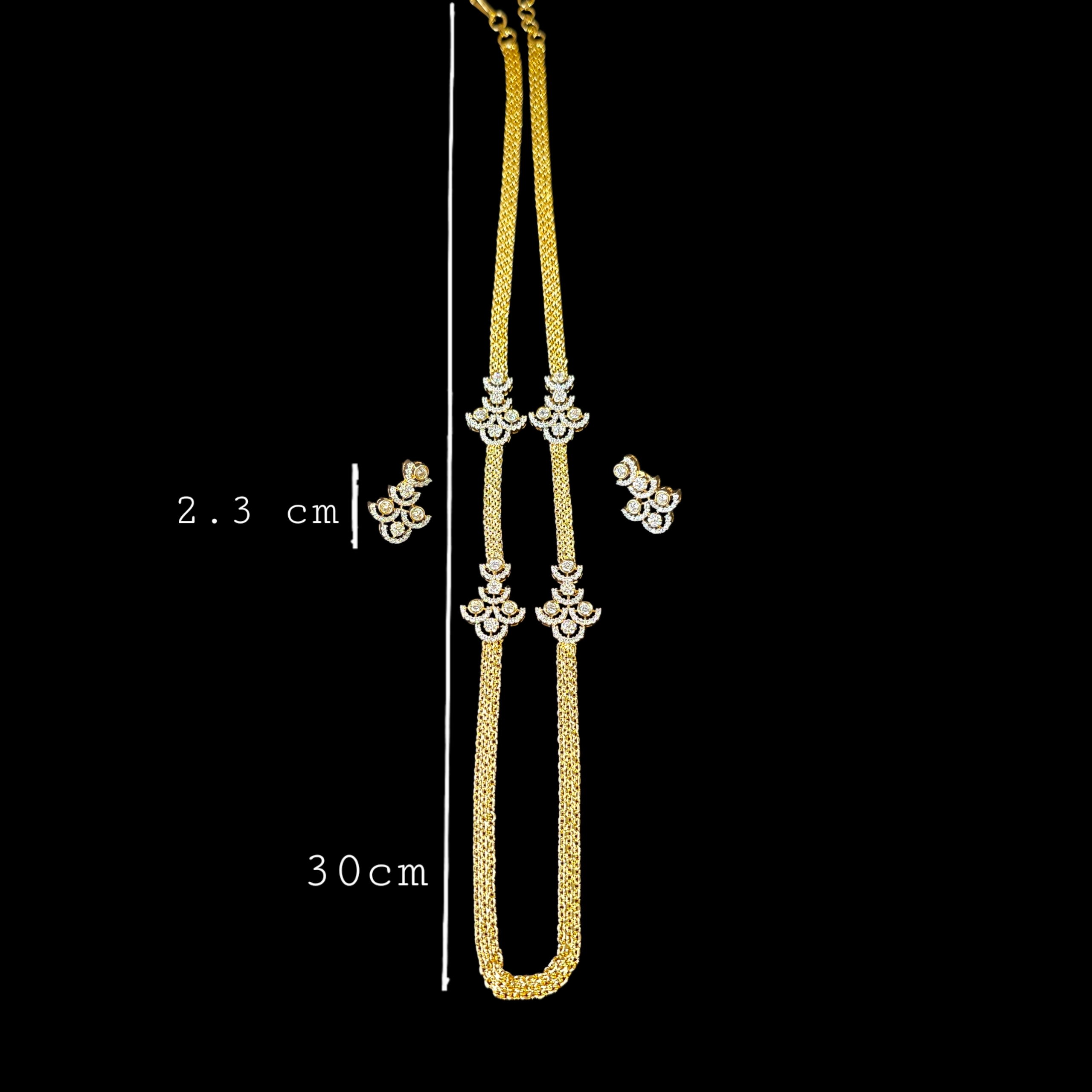 Introducing luxurious Yellow Gold electroplated Necklace set that boasts stunning CZ complemented by matching Earrings. Add a touch of elegance and sparkle to your look, perfect accessory to elevate any outfit!