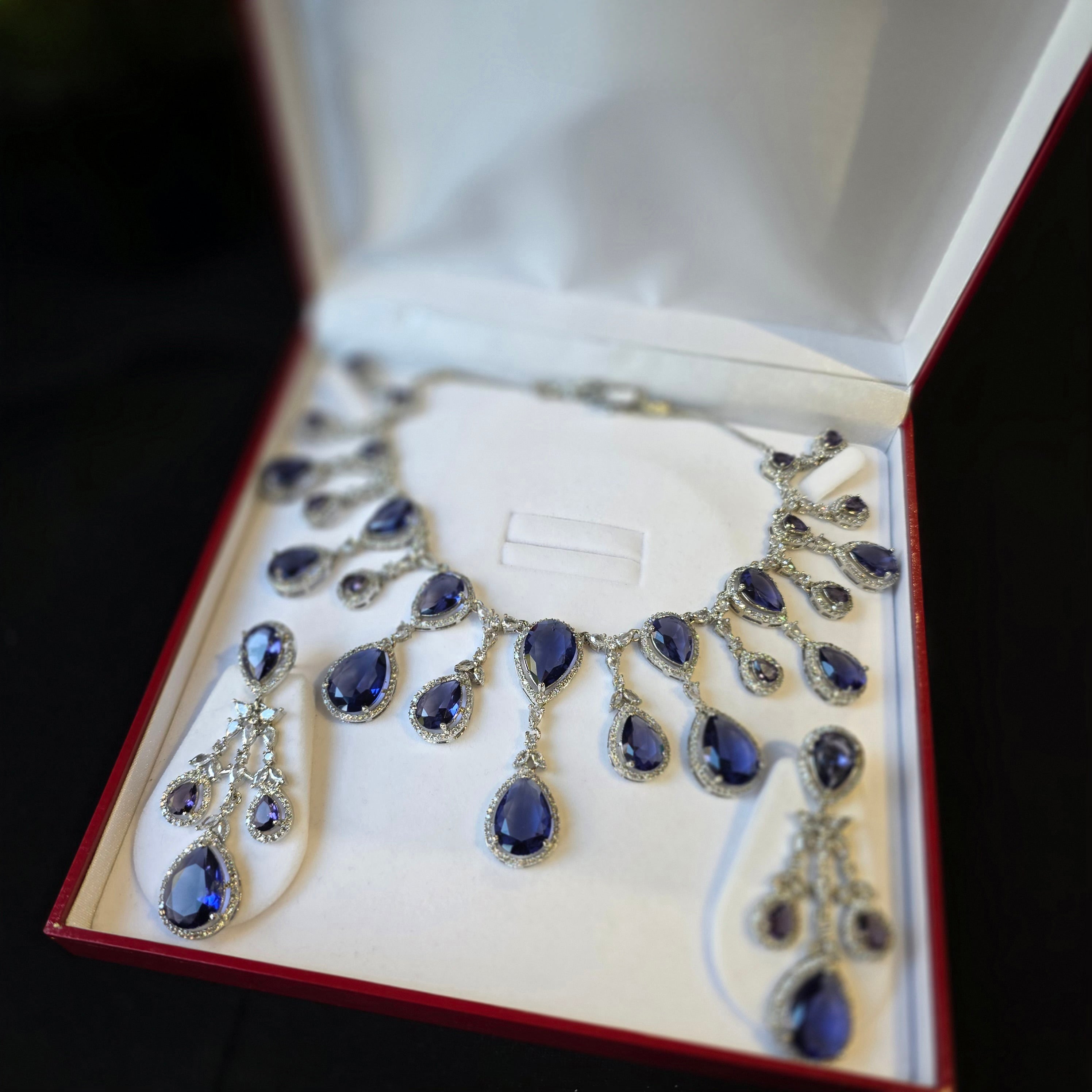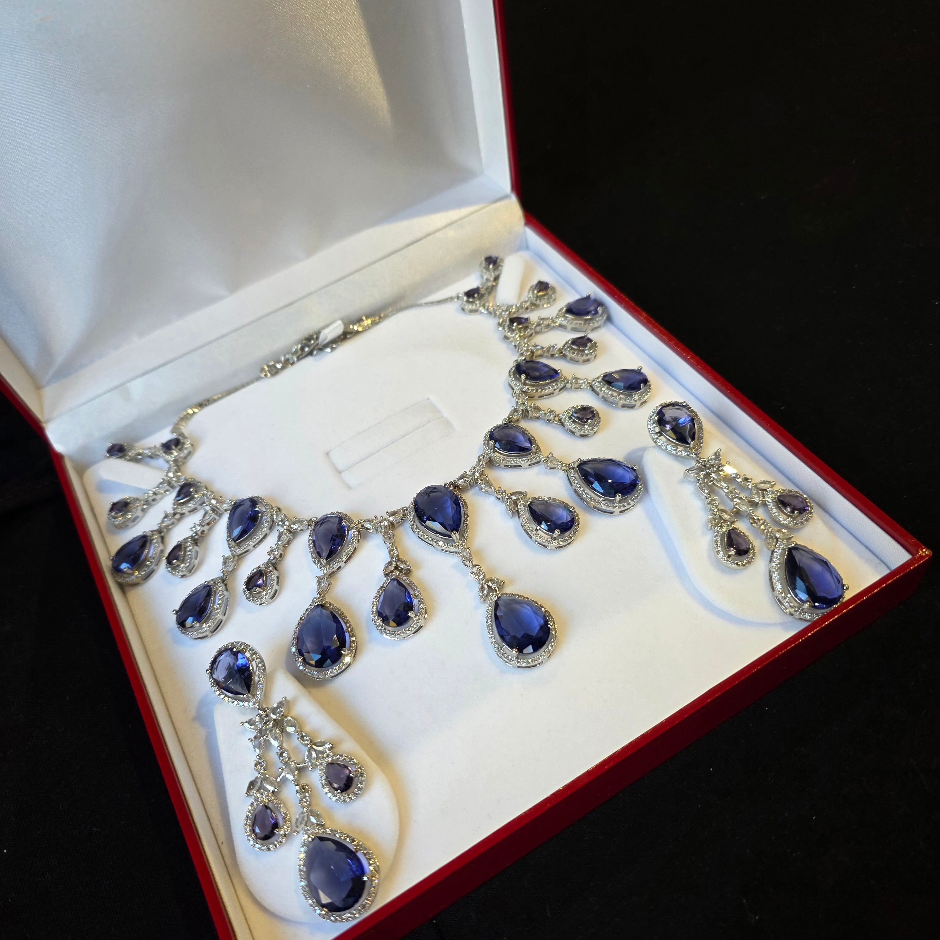 Introducing Exquisite Necklace Set that boasts stunning Purple Amethysts (lab-made), complemented by matching Earrings. Add a touch of elegance and sparkle to your look, perfect accessory to elevate any outfit!
