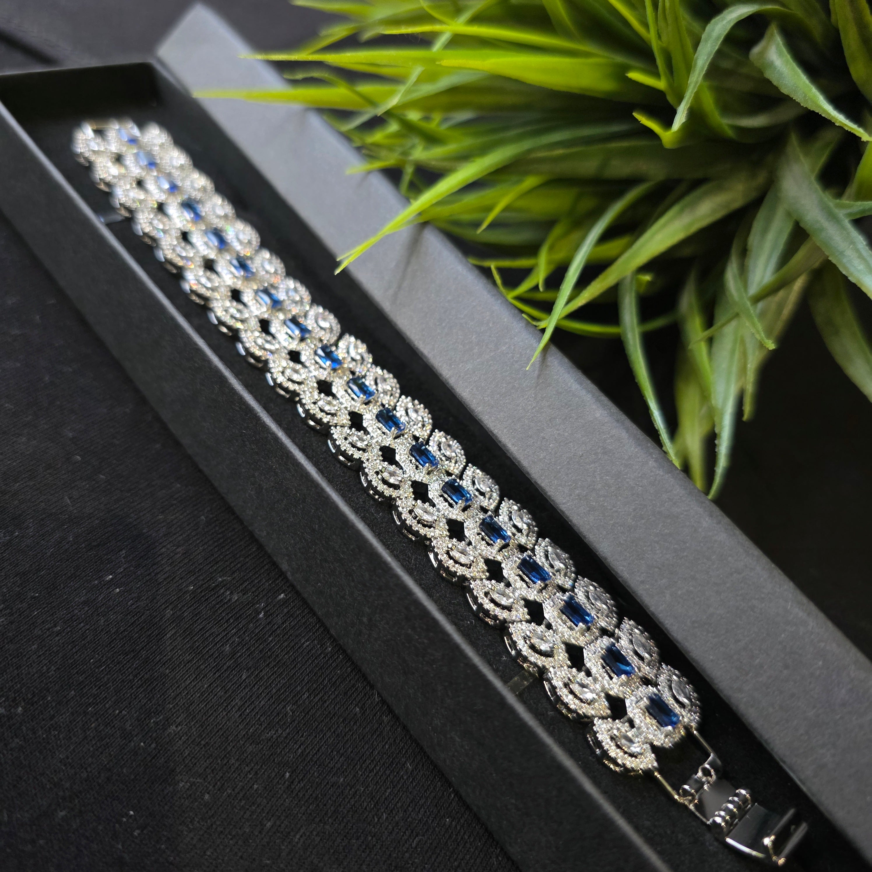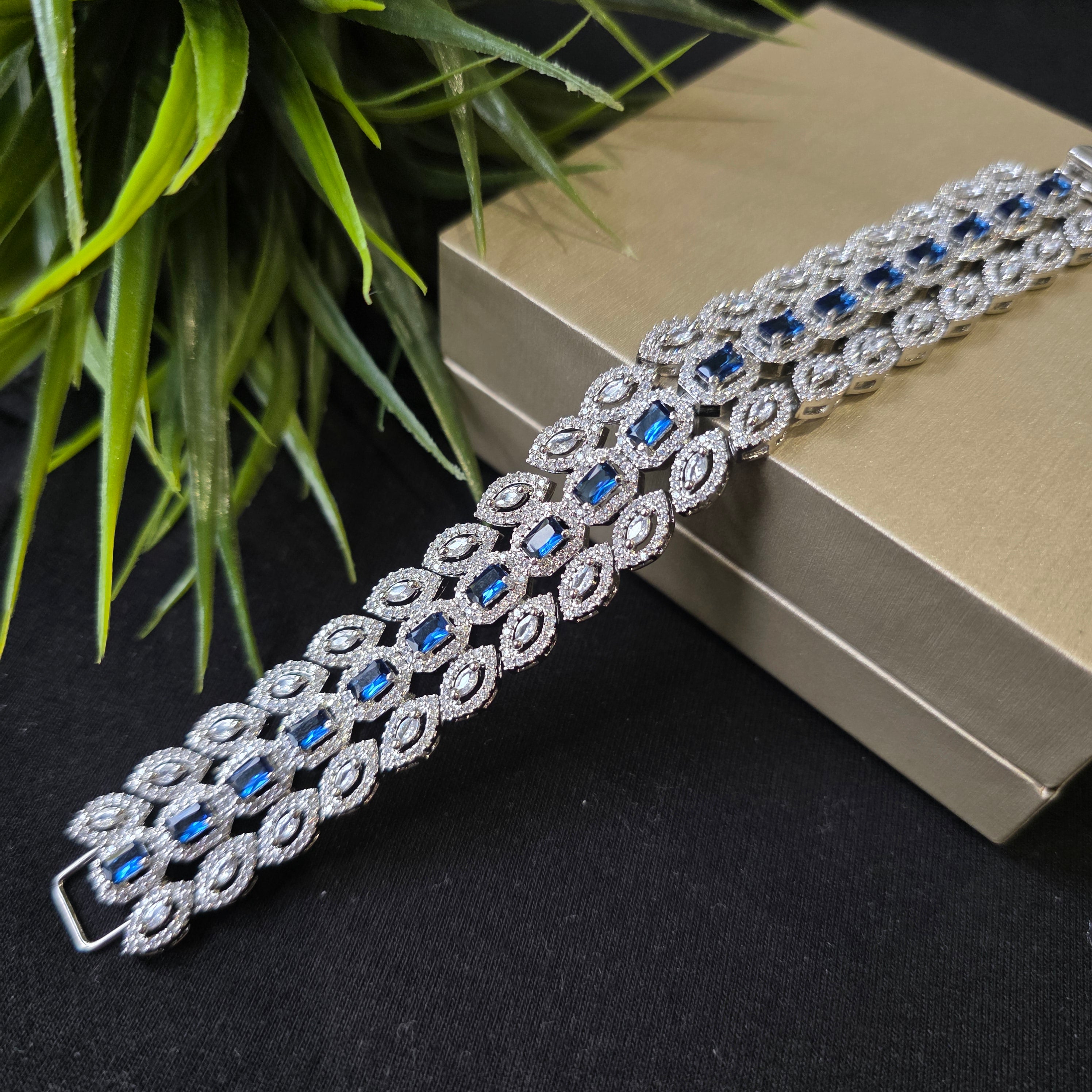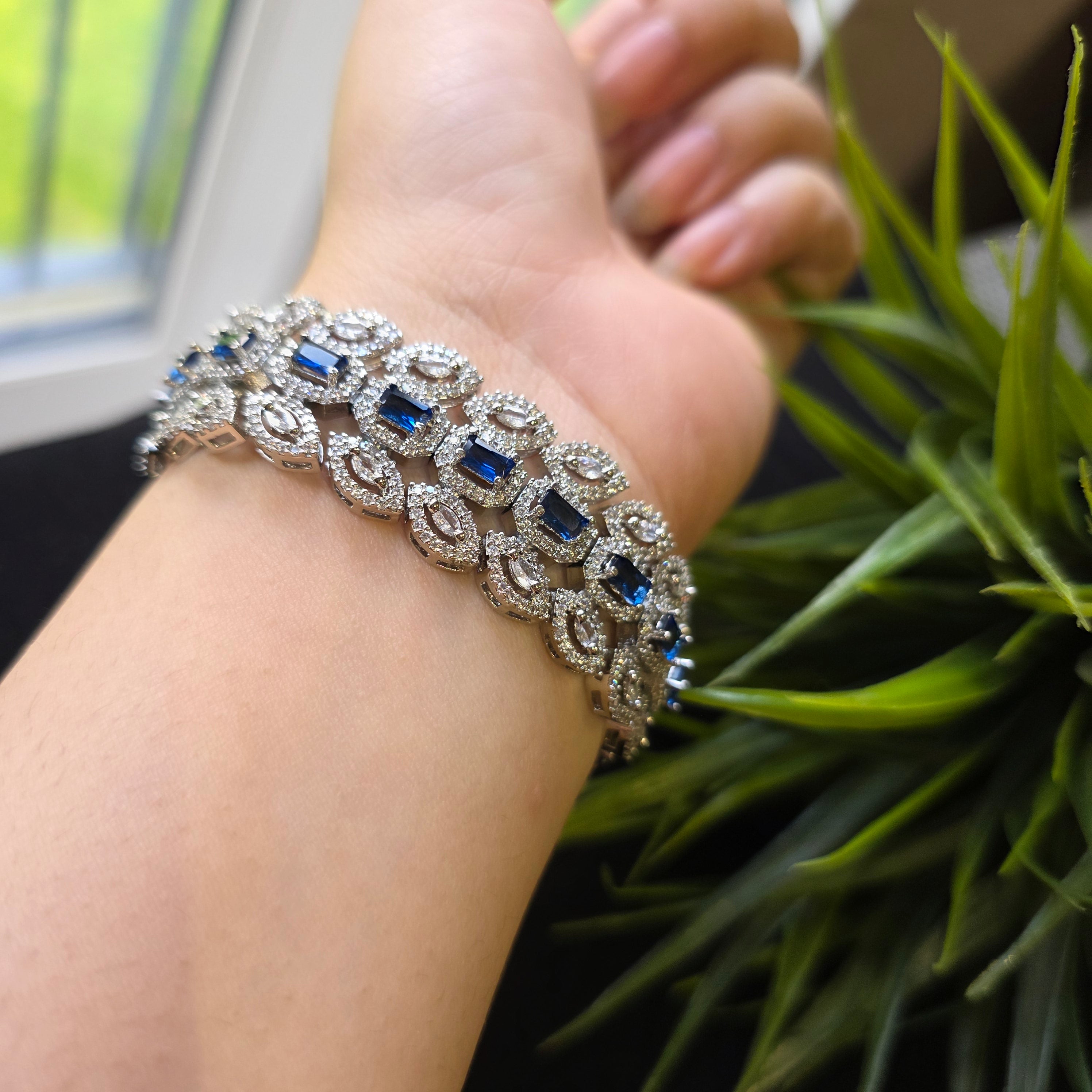 Introducing this exquisite Bracelet that boasts stunning Sapphires (lab-made). Add a touch of elegance and sparkle to your look, perfect accessory to elevate any outfit!