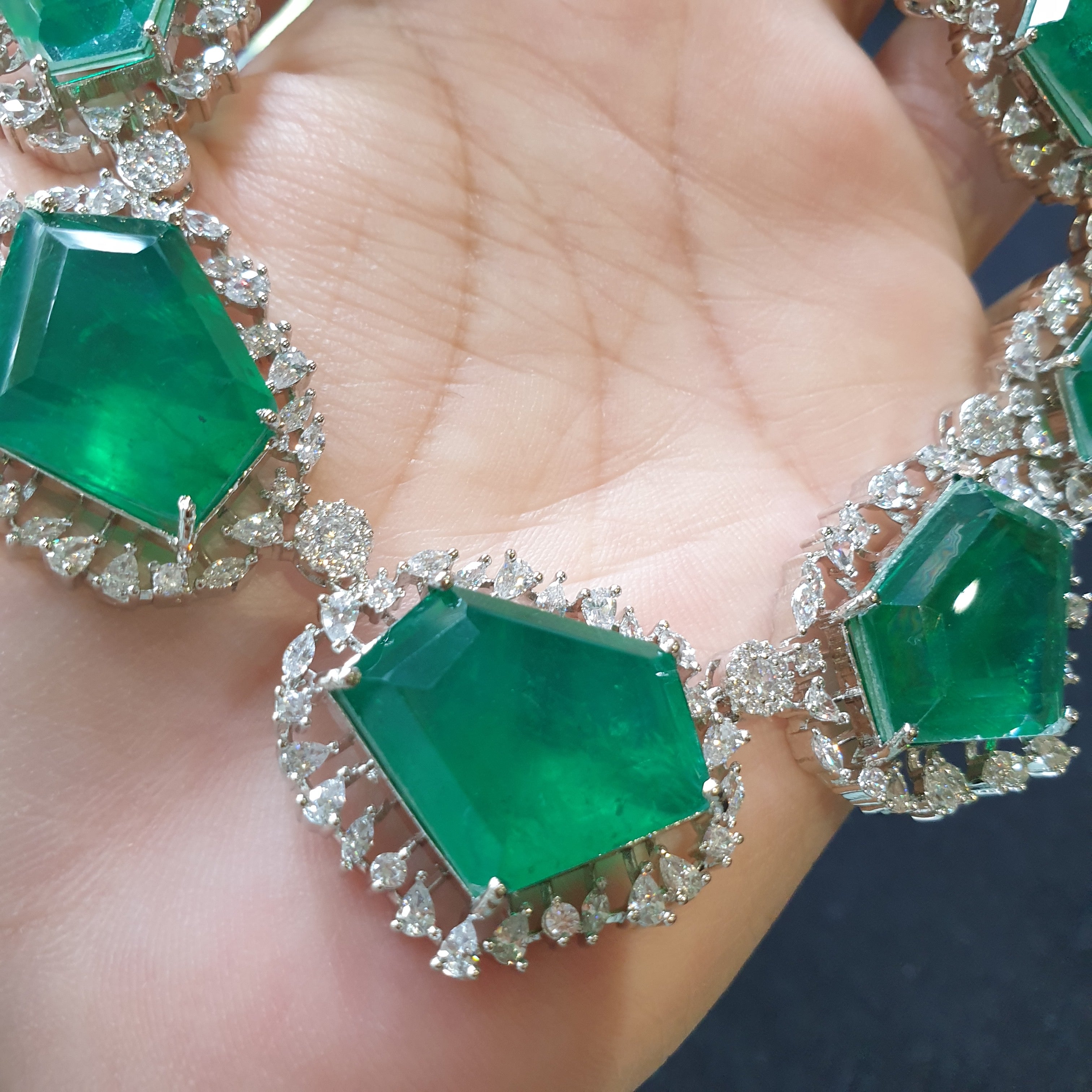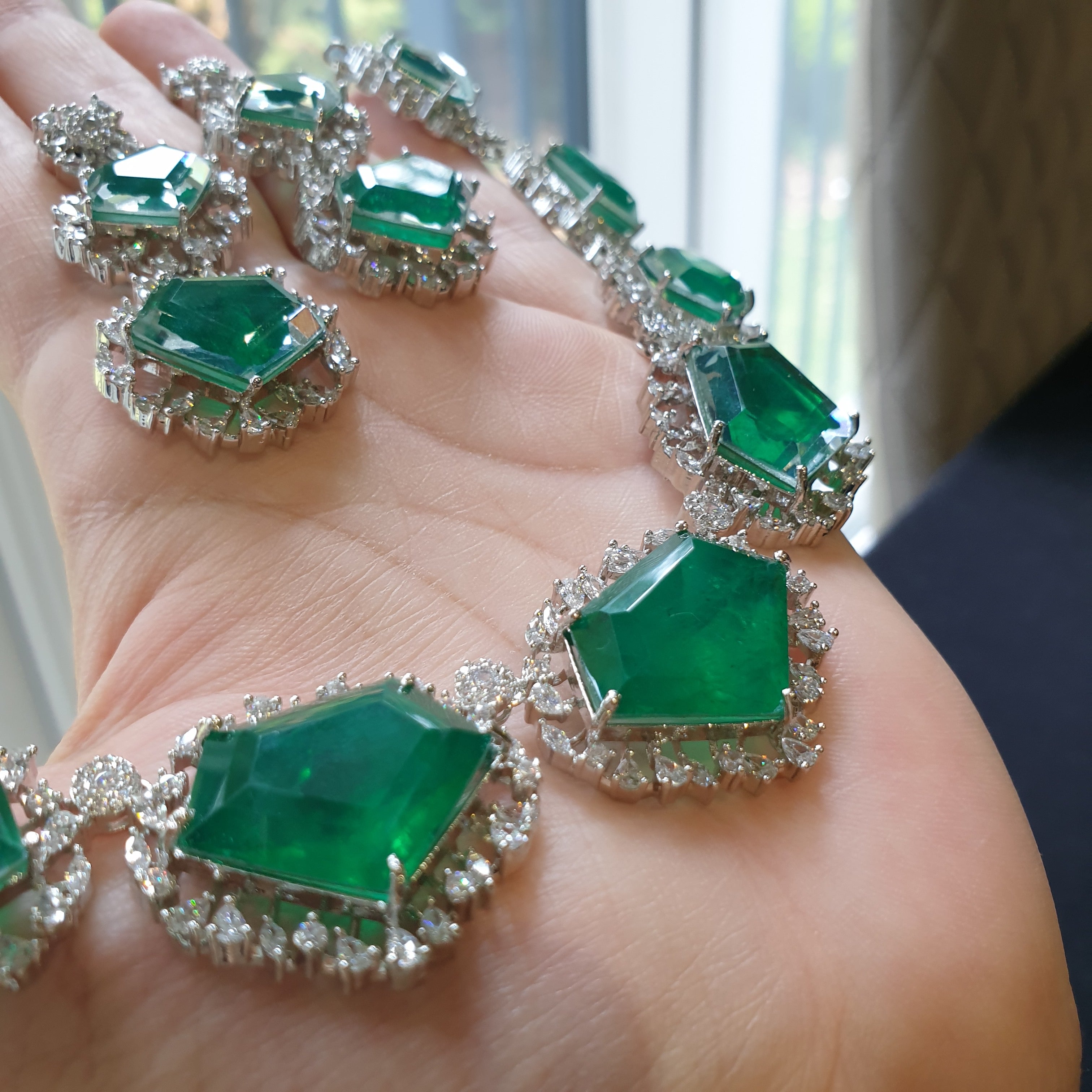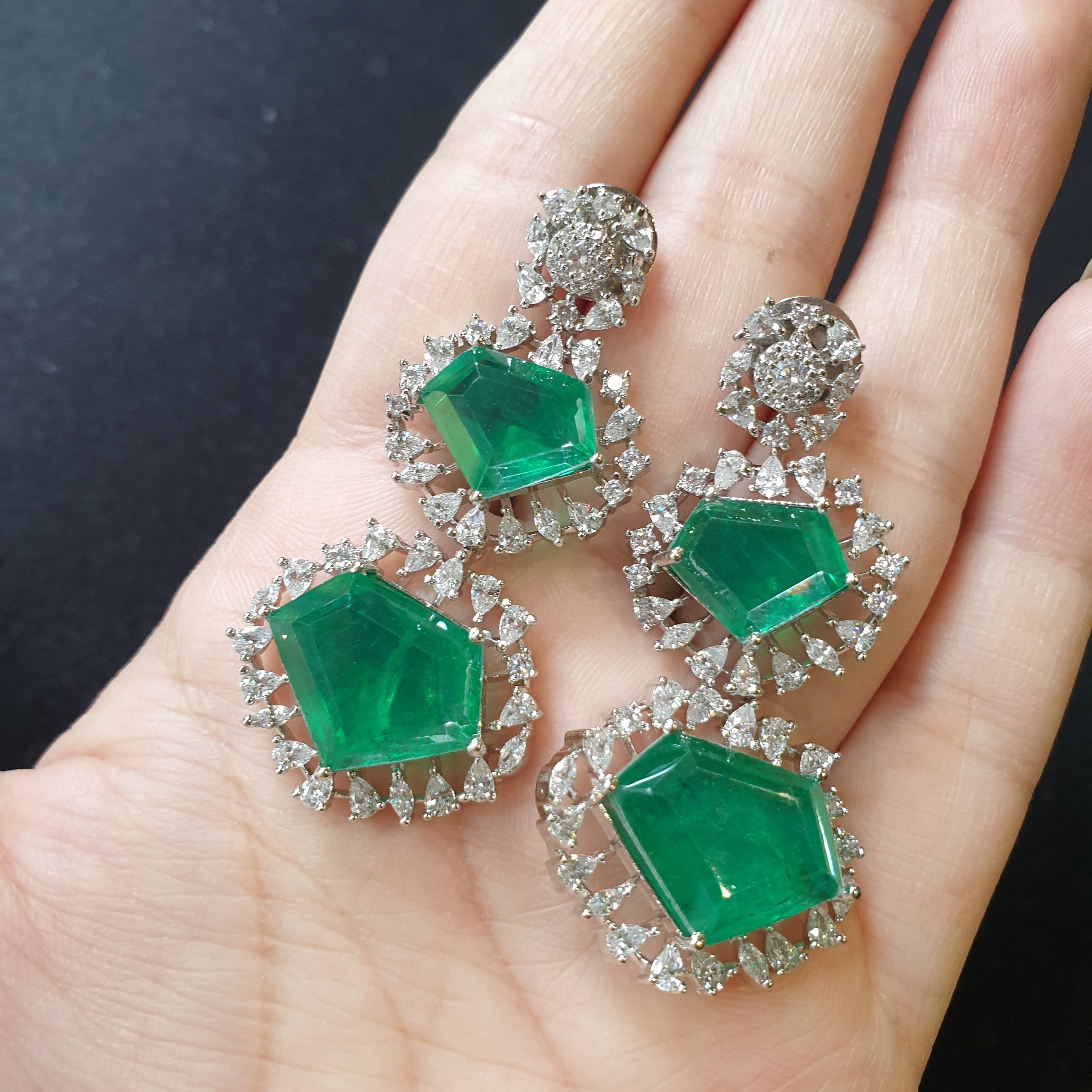 Classic beauty meets modern craftsmanship in this Lab-Grown Emeralds Necklace Set, featuring rich emerald green stones ethically created for brilliance and sustainability. Surrounded by sparkling cubic zirconia, each piece exudes timeless elegance with a touch of luxury.