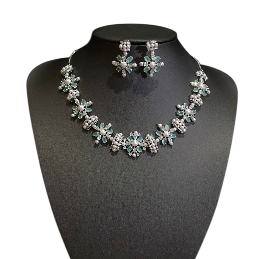 Grace meets sophistication in this exquisite Lab-Grown Emerald Necklace Set, artfully combining the deep allure of emerald green, the sparkle of cubic zirconia, and the timeless elegance of luminous pearls. Each piece is crafted with precision and finished in white gold plating, offering a luxurious yet ethical alternative to traditional gemstones.