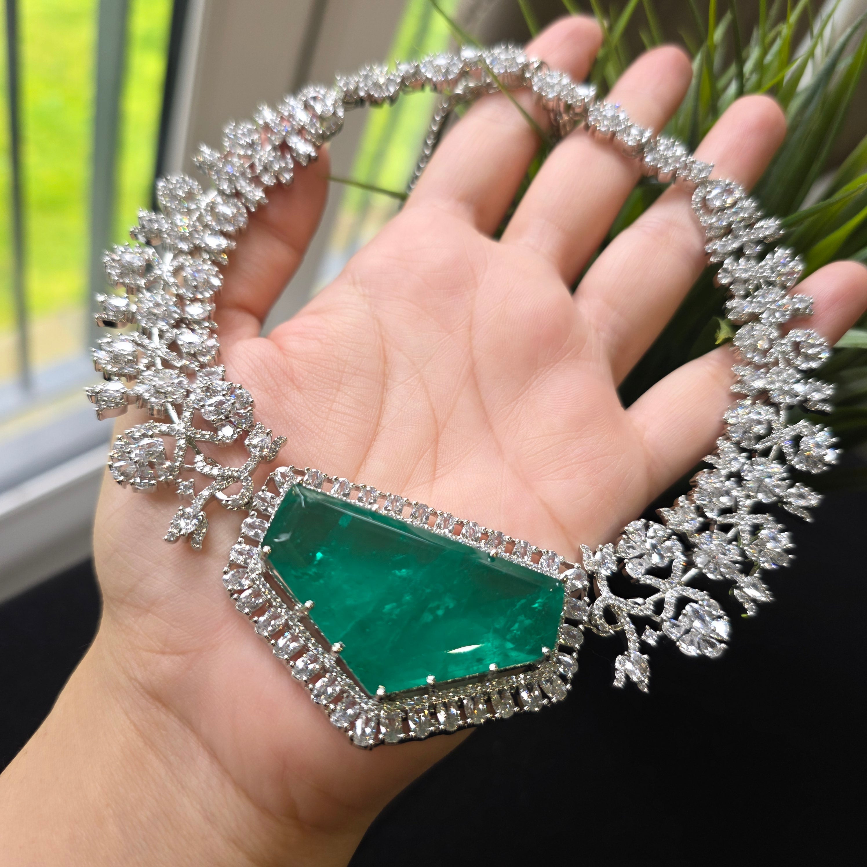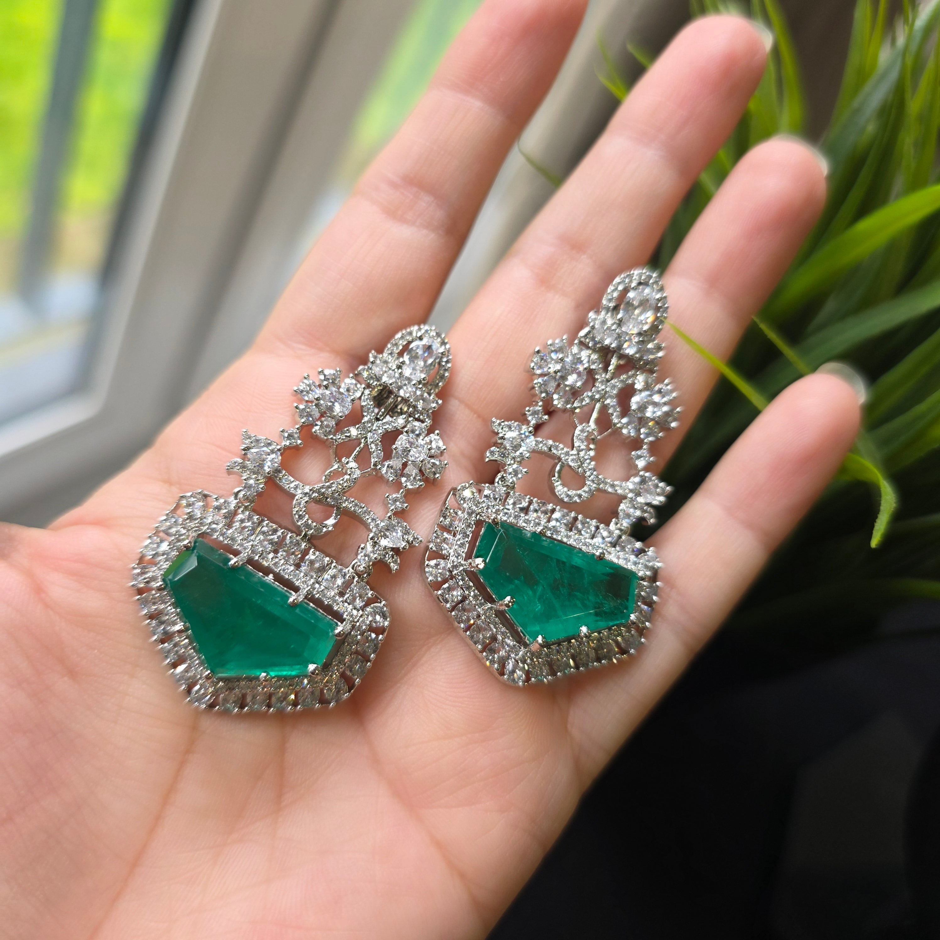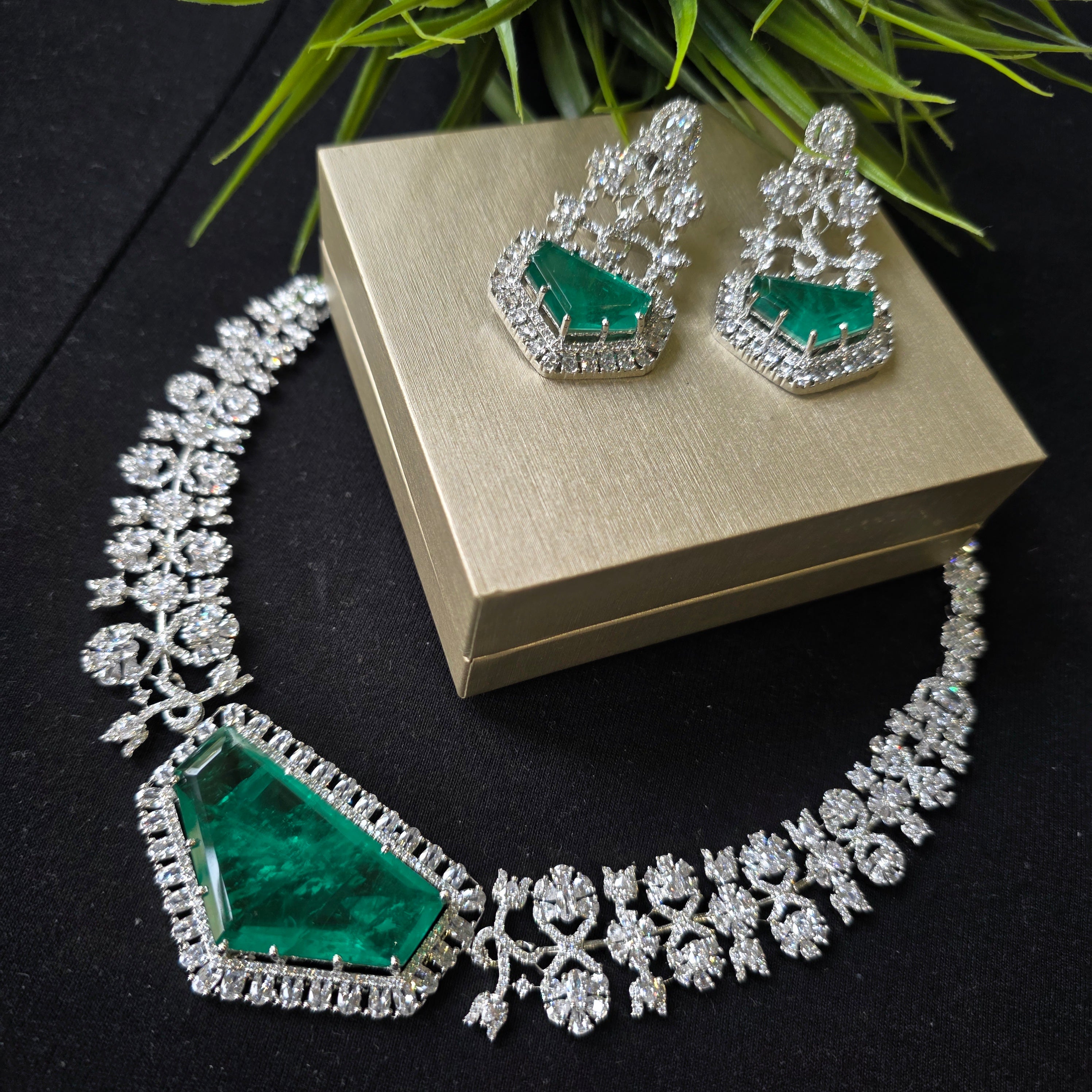 Introducing this Statement piece that boasts a stunning Emerald Doublet centre stone, complemented by matching Earrings. Add a touch of elegance and sparkle to your look, perfect accessory to elevate any outfit!