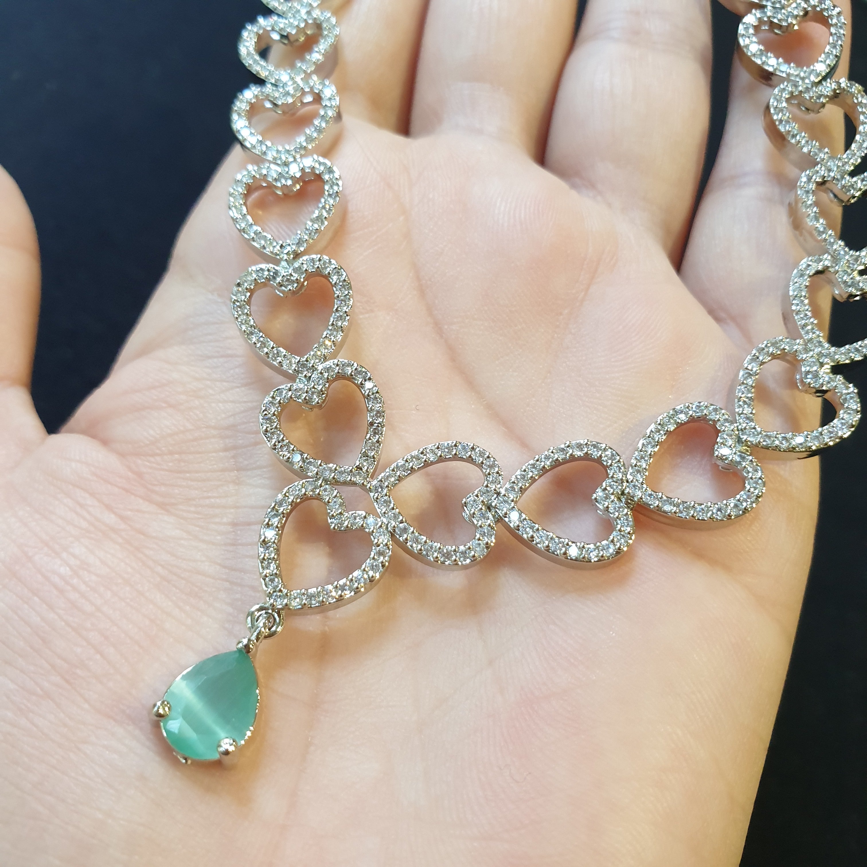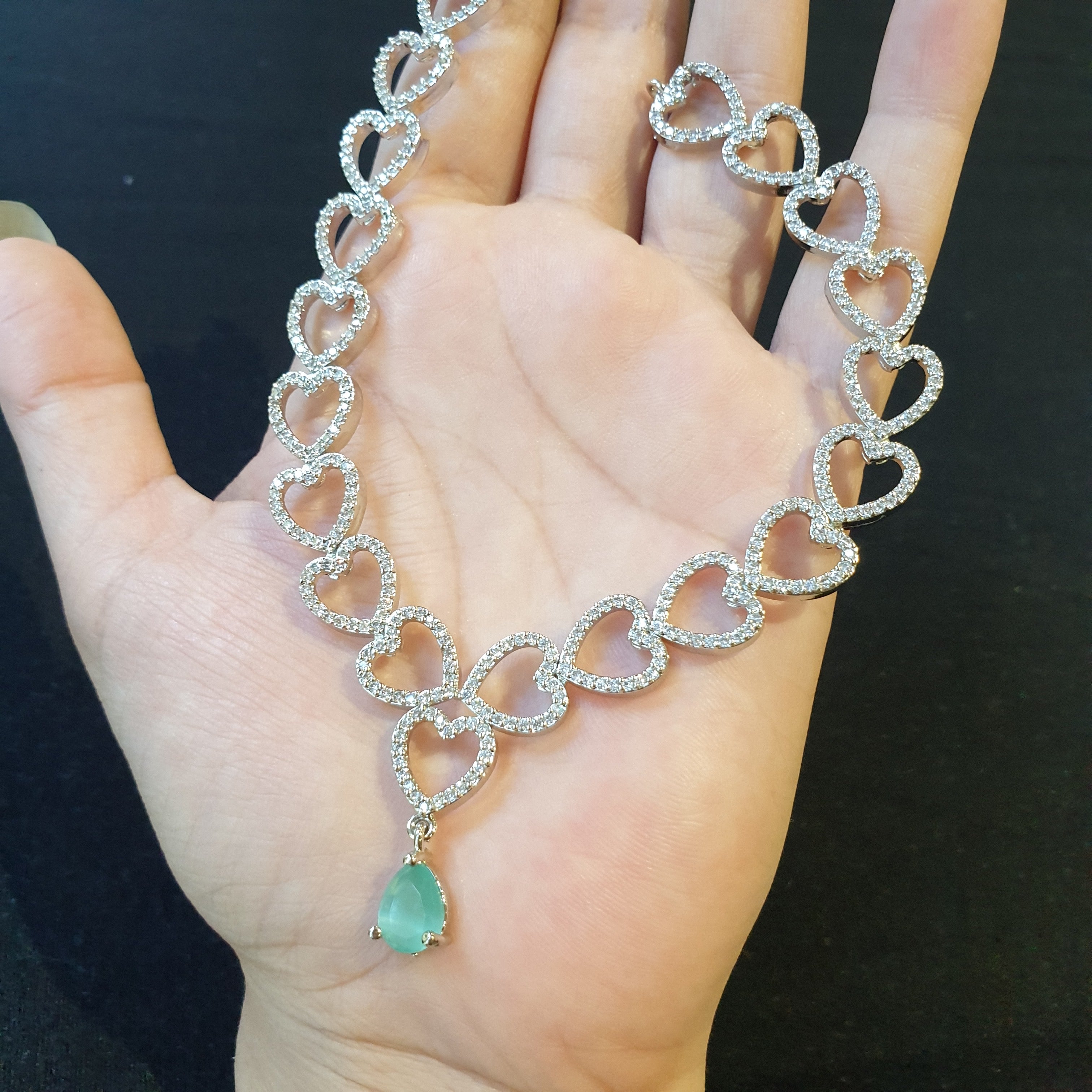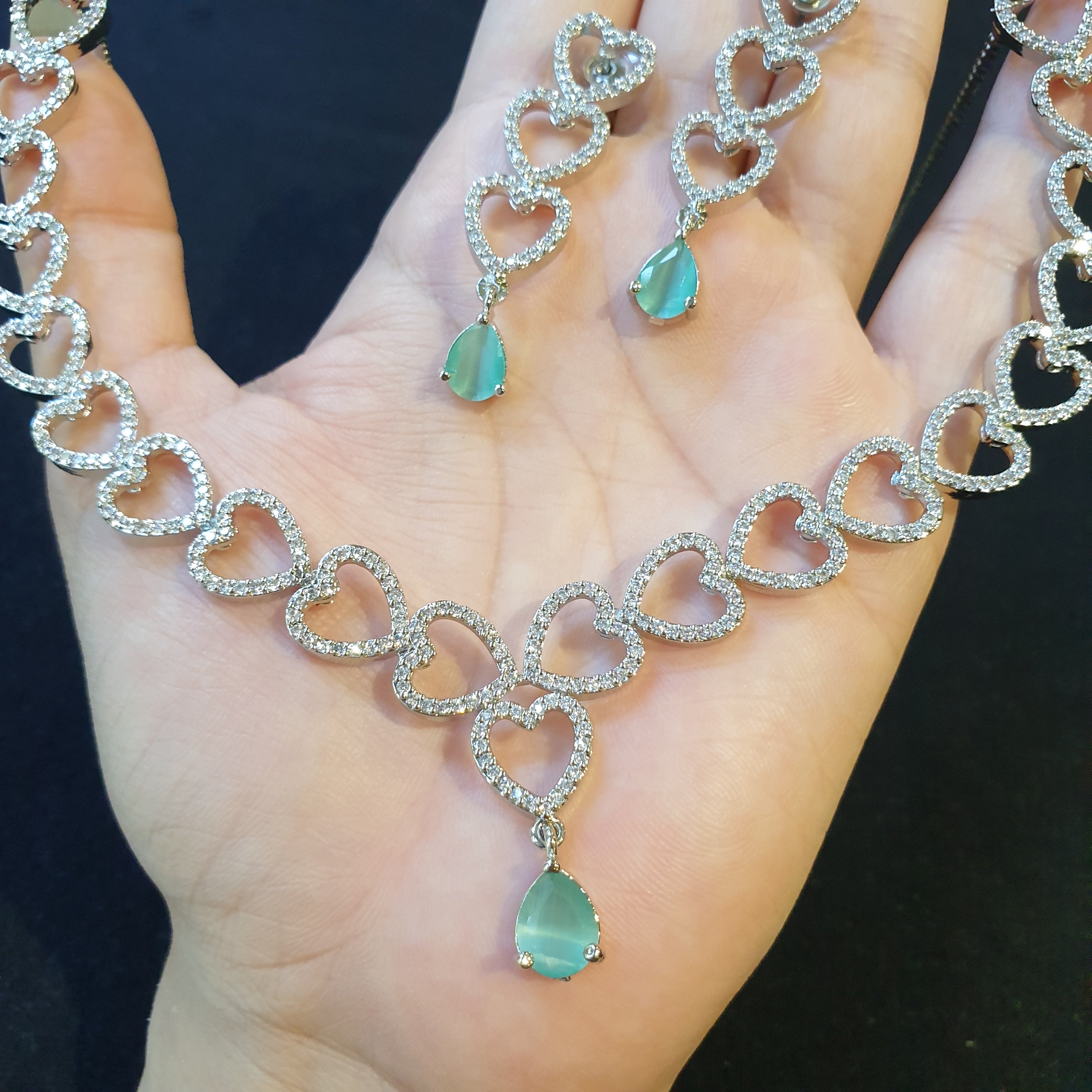 The set is meticulously crafted with premium white gold plating, providing a radiant, polished finish that beautifully complements the gemstones. Designed for versatility, this timeless set is perfect for both everyday wear and special occasions. It includes a necklace with a pendant and matching earrings, making it a stunning gift or a cherished addition to any jewelry collection.