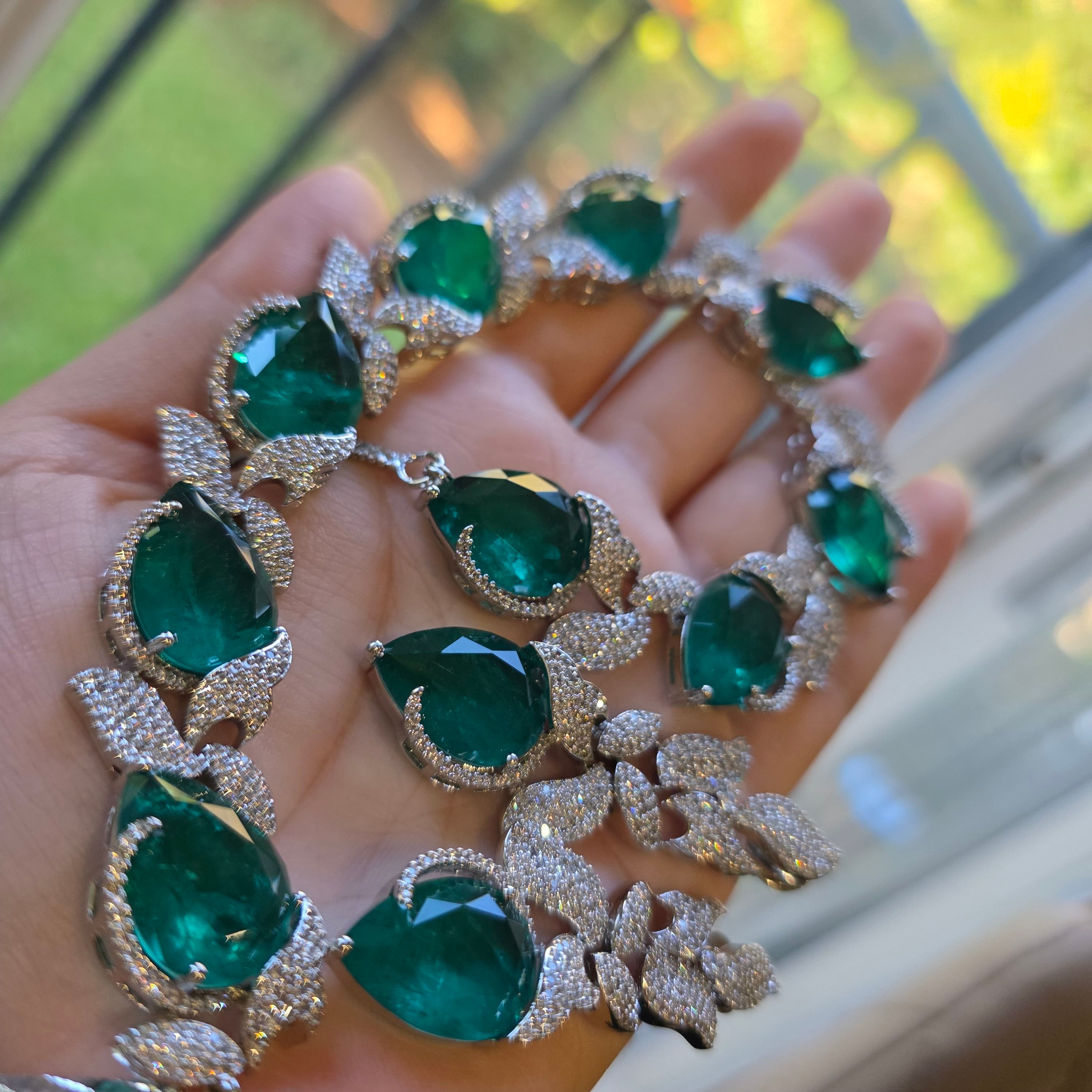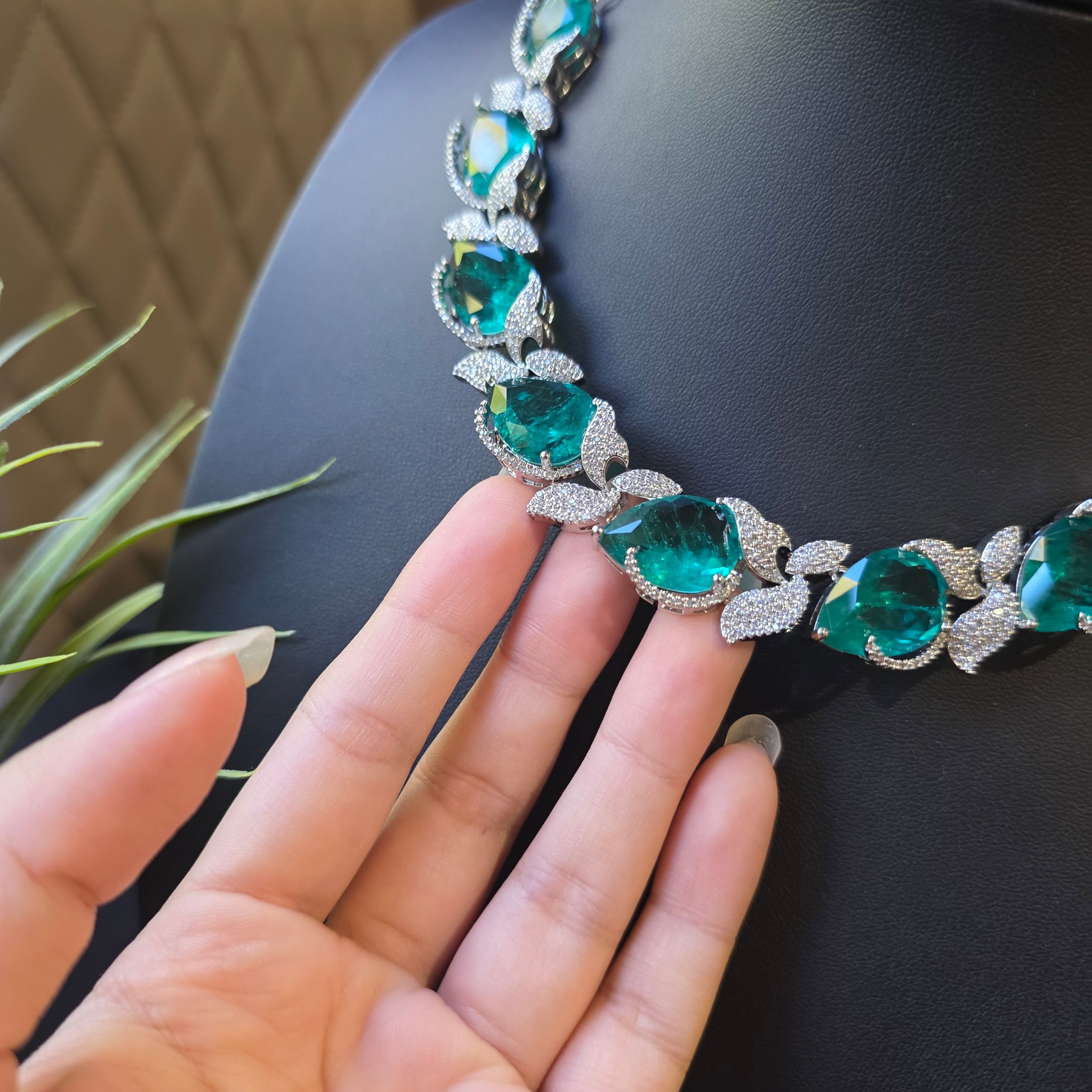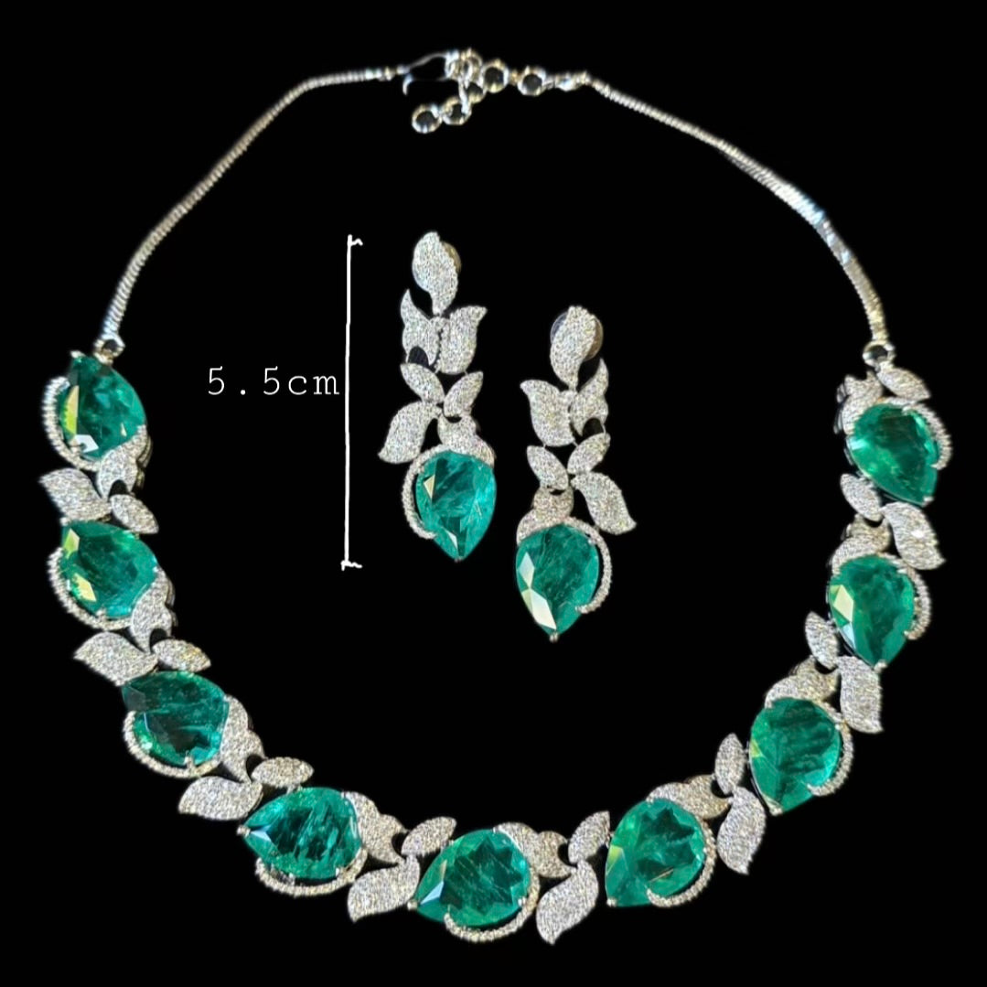 Bespoke piece featuring stunning Emerald Doublet and Cubic Zirconia studded Necklace paired with matching Earrings.