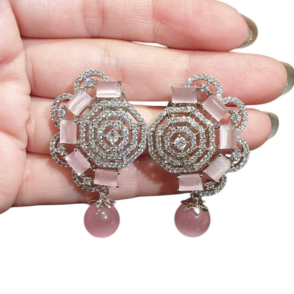 These elegant pink quartz earrings feature soft, blush-toned gemstones, beautifully enhanced by sparkling cubic zirconia accents and set in high-quality white gold plating. The delicate pink quartz exudes a gentle, feminine charm, while the cubic zirconia stones add a radiant touch of brilliance. Perfect for both everyday wear and special occasions, these earrings offer a timeless and graceful appeal. Lightweight and comfortable, they make a lovely addition to any jewelry collection.