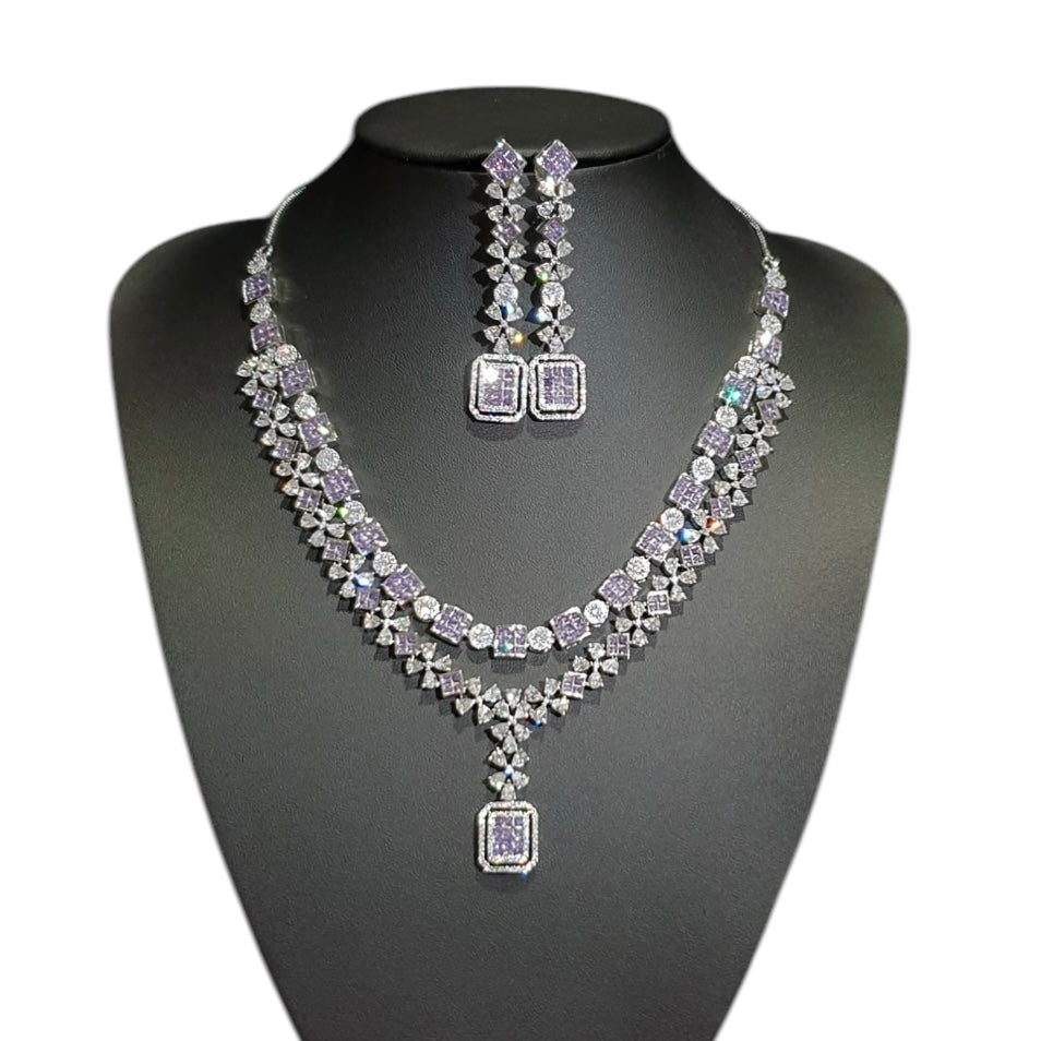 Bring a touch of regal elegance to your collection with this purple amethyst necklace and earrings set, featuring rich purple amethyst gemstones accented by sparkling cubic zirconia and finished with a luxurious white gold-plated shine.