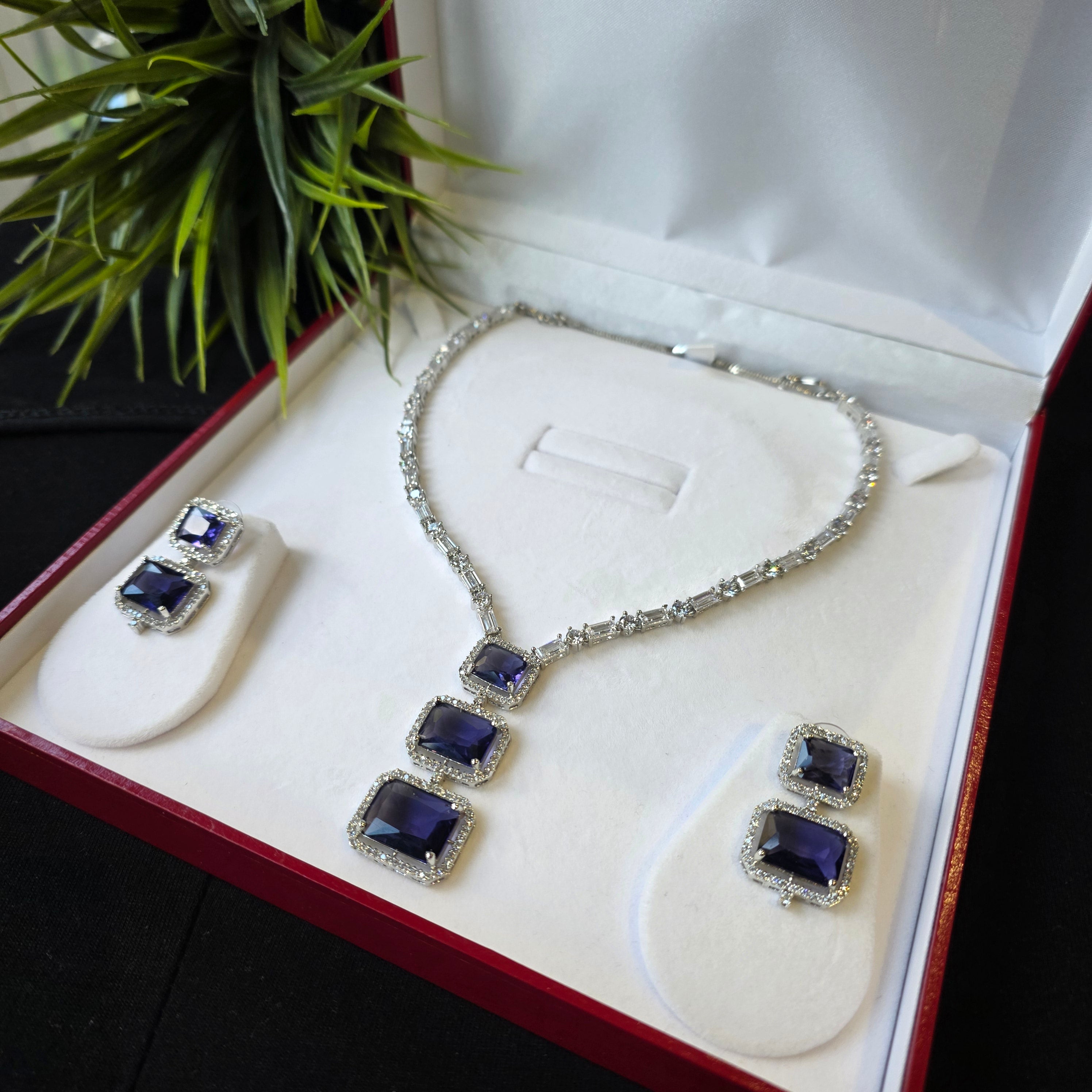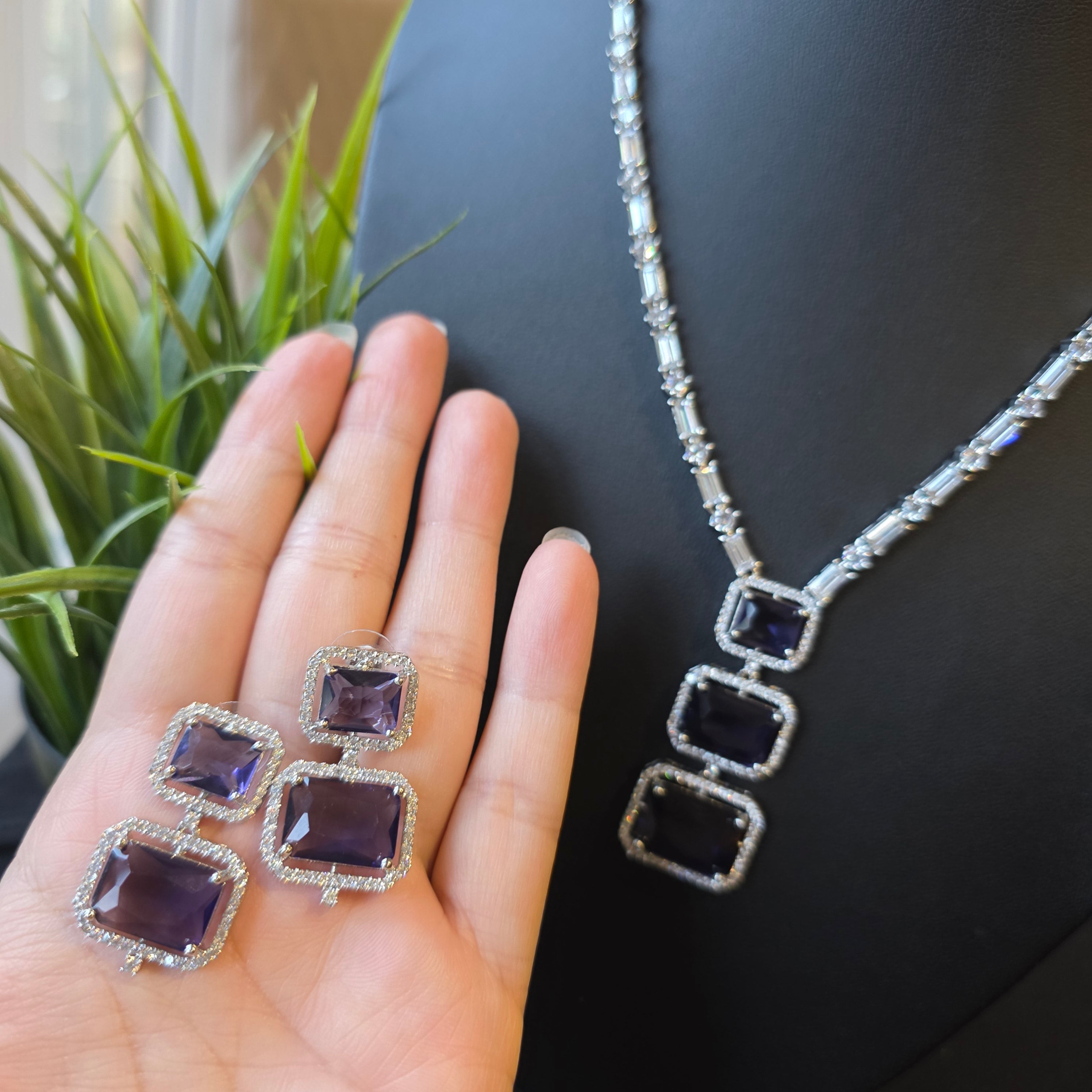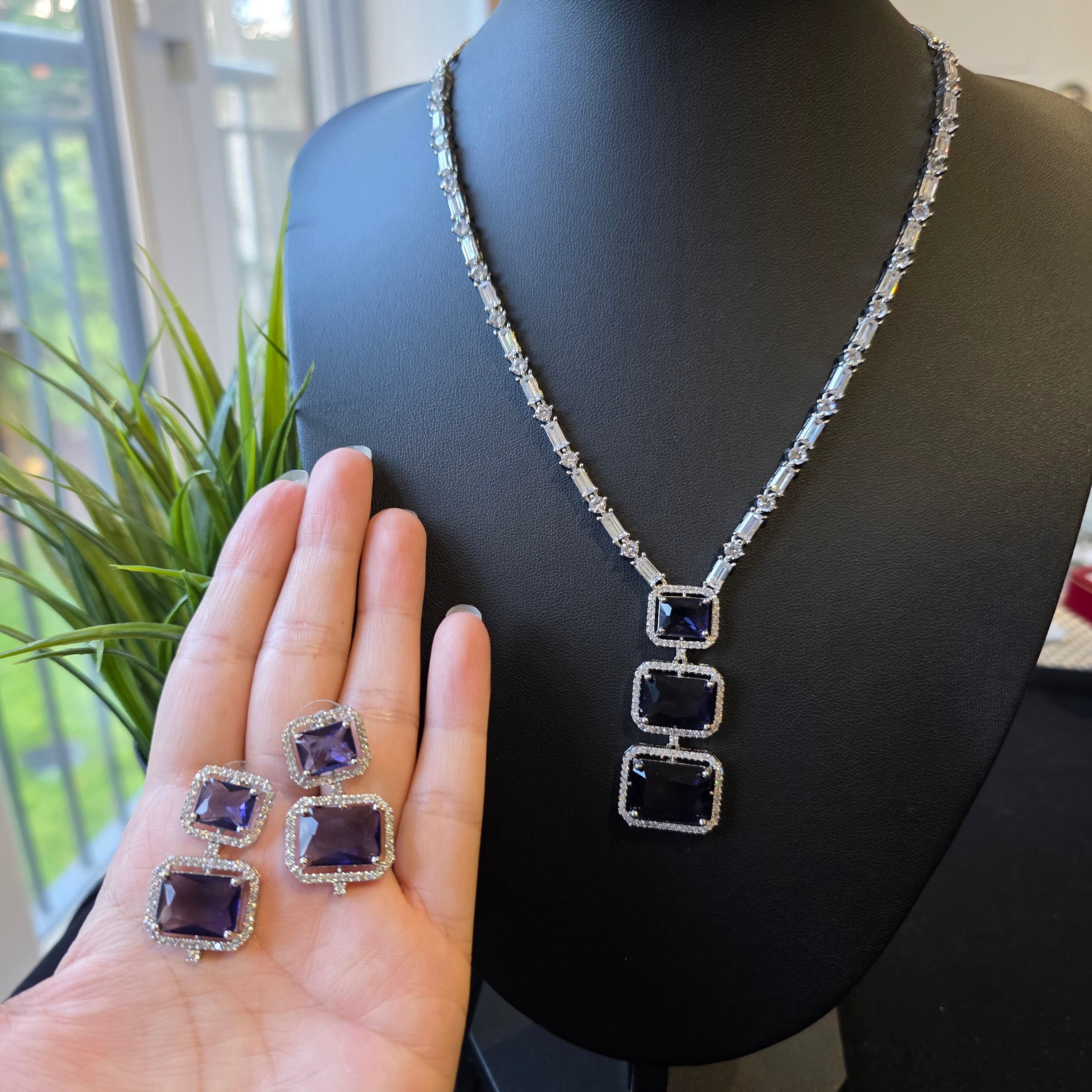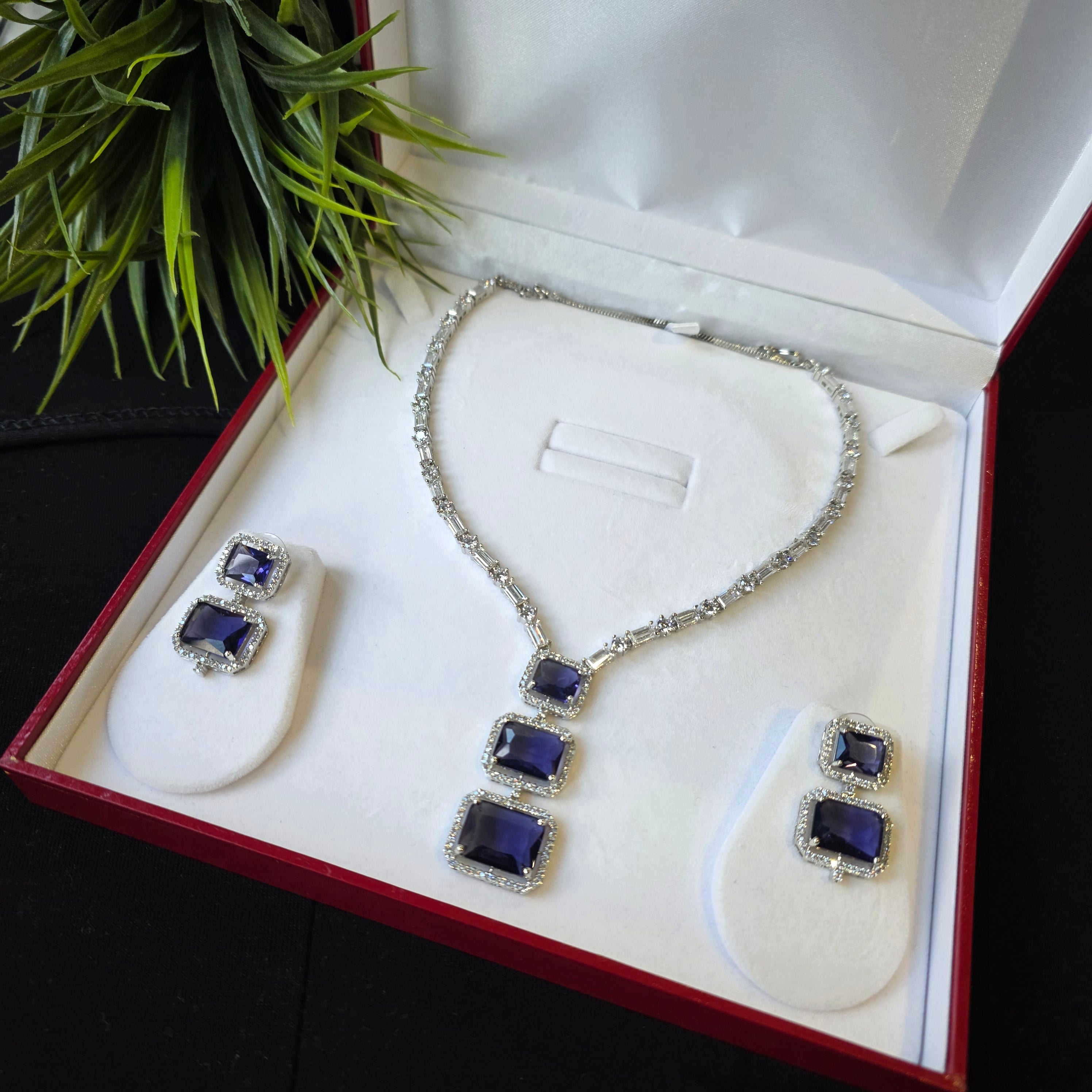 Introducing Dazzling piece featuring Finest Cubic Zirconia studded Necklace paired with matching Earrings.