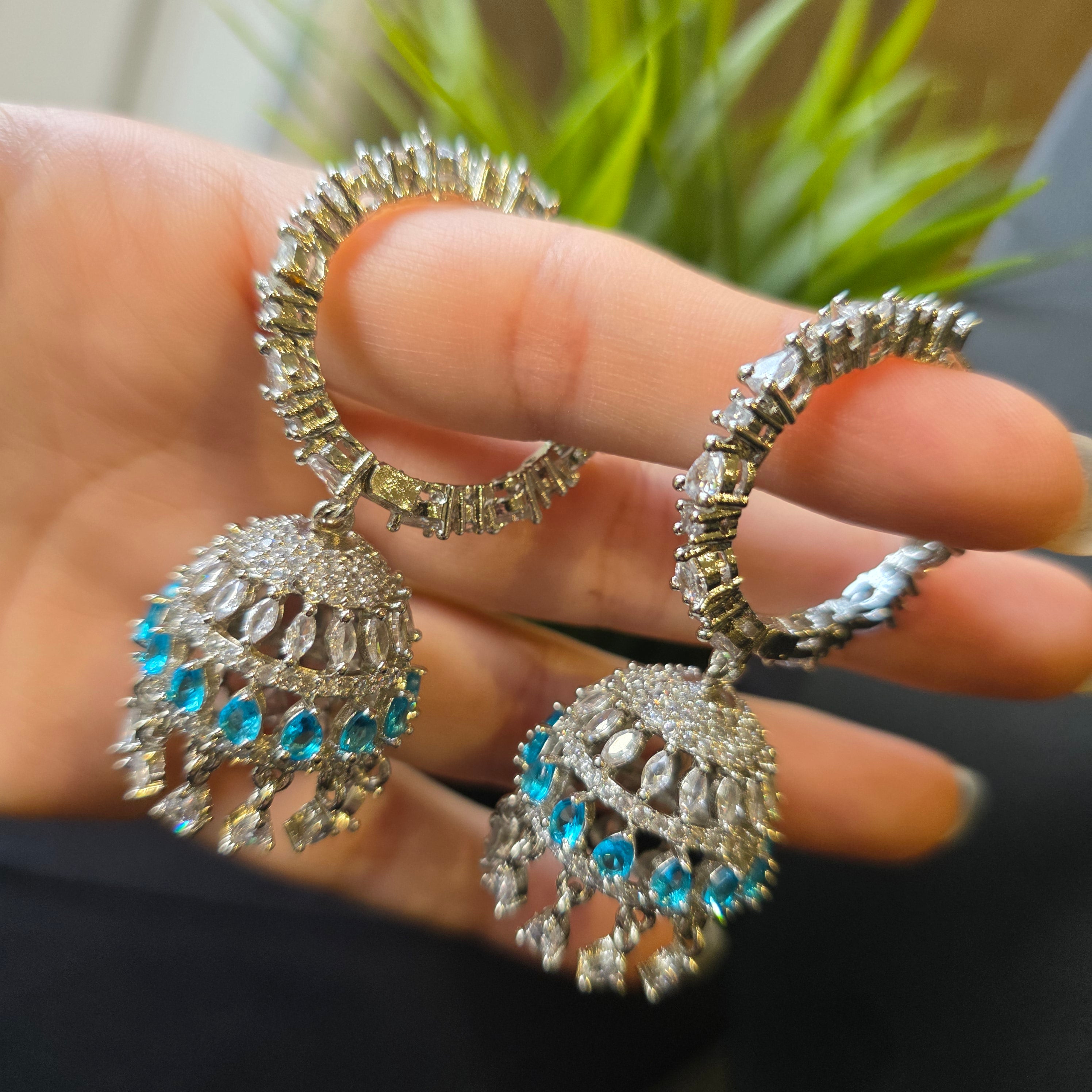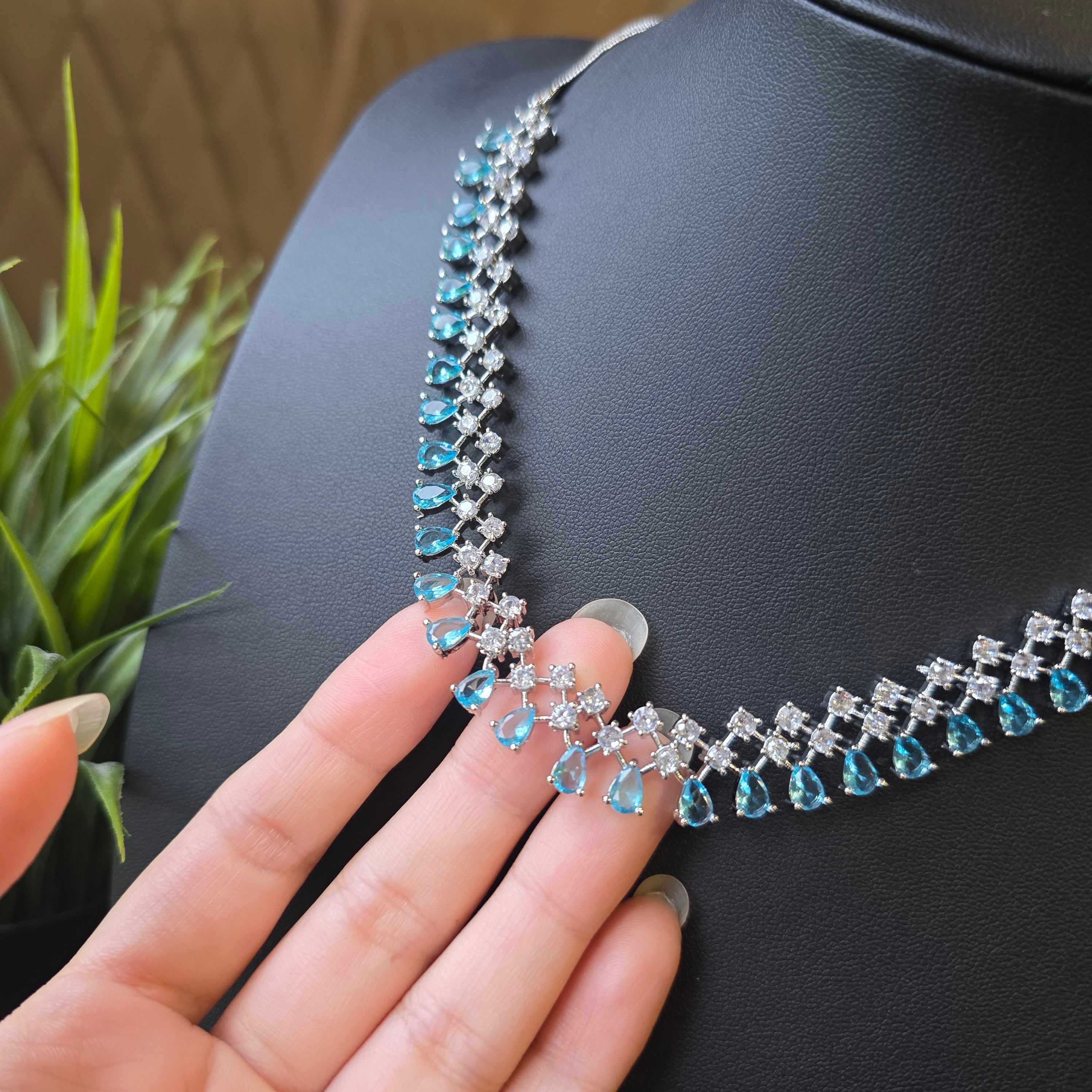 Introducing this exquisite piece that boasts stunning Aquamarines (lab-made), complemented by matching Earrings. Add a touch of elegance and sparkle to your look, perfect accessory to elevate any outfit!