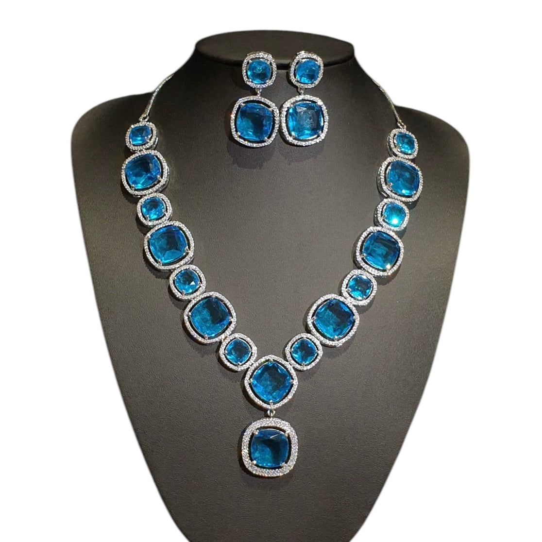 Add a touch of elegance and brilliance to your jewelry collection with this stunning necklace and earrings set, featuring radiant blue topaz and sparkling cubic zirconia accents.
