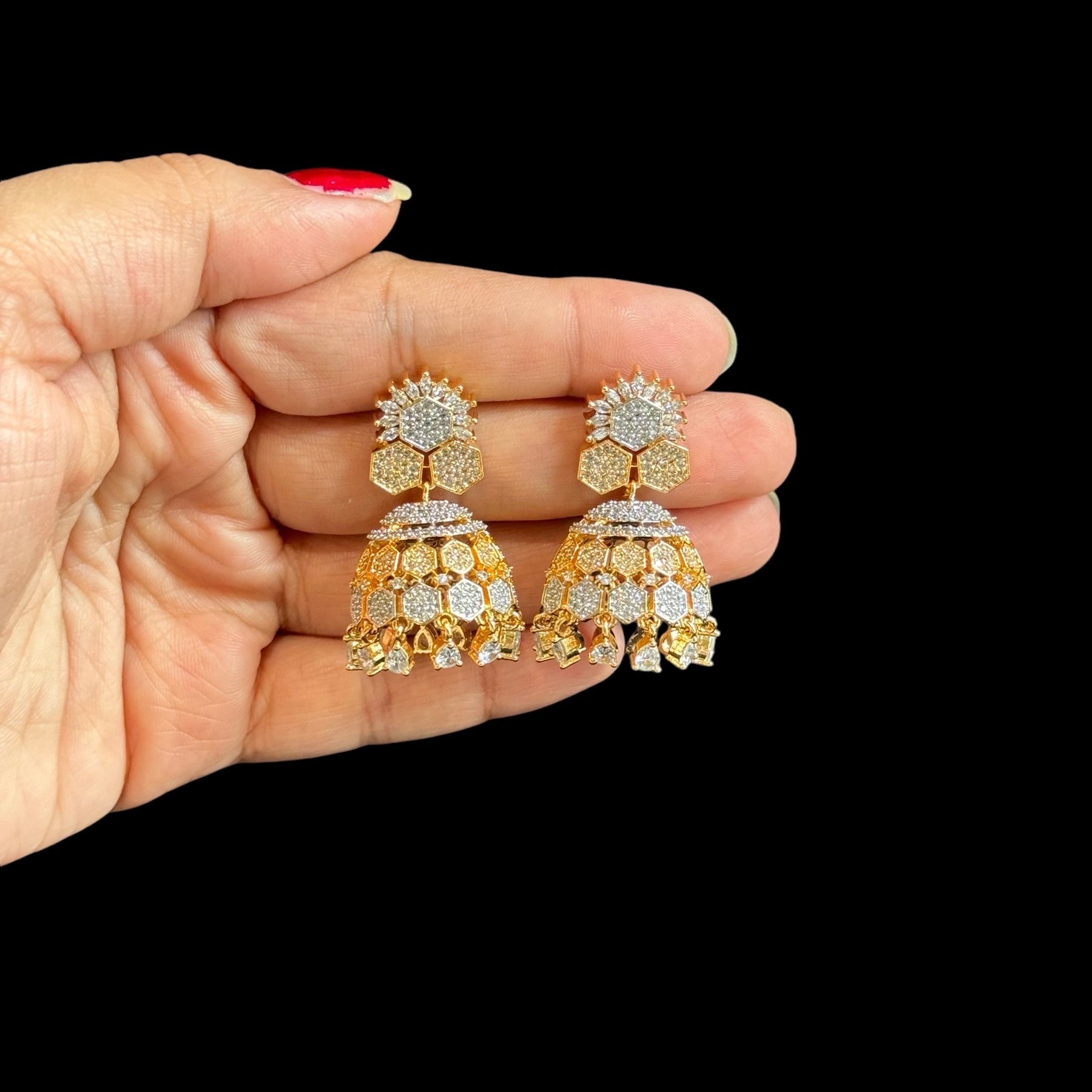 These elegant gold-plated cubic zirconia earrings are the perfect blend of luxury and sparkle. Featuring dazzling, expertly cut cubic zirconia stones set in a rich gold-plated finish, they offer a timeless and sophisticated look. The gold plating enhances the brilliance of the stones, creating a beautiful contrast that adds warmth and elegance to any ensemble. Ideal for both formal occasions and everyday wear, these earrings are crafted for durability and shine, ensuring they remain a stylish accessory for years to come. Their versatile design makes them a must-have addition to any jewelry collection.