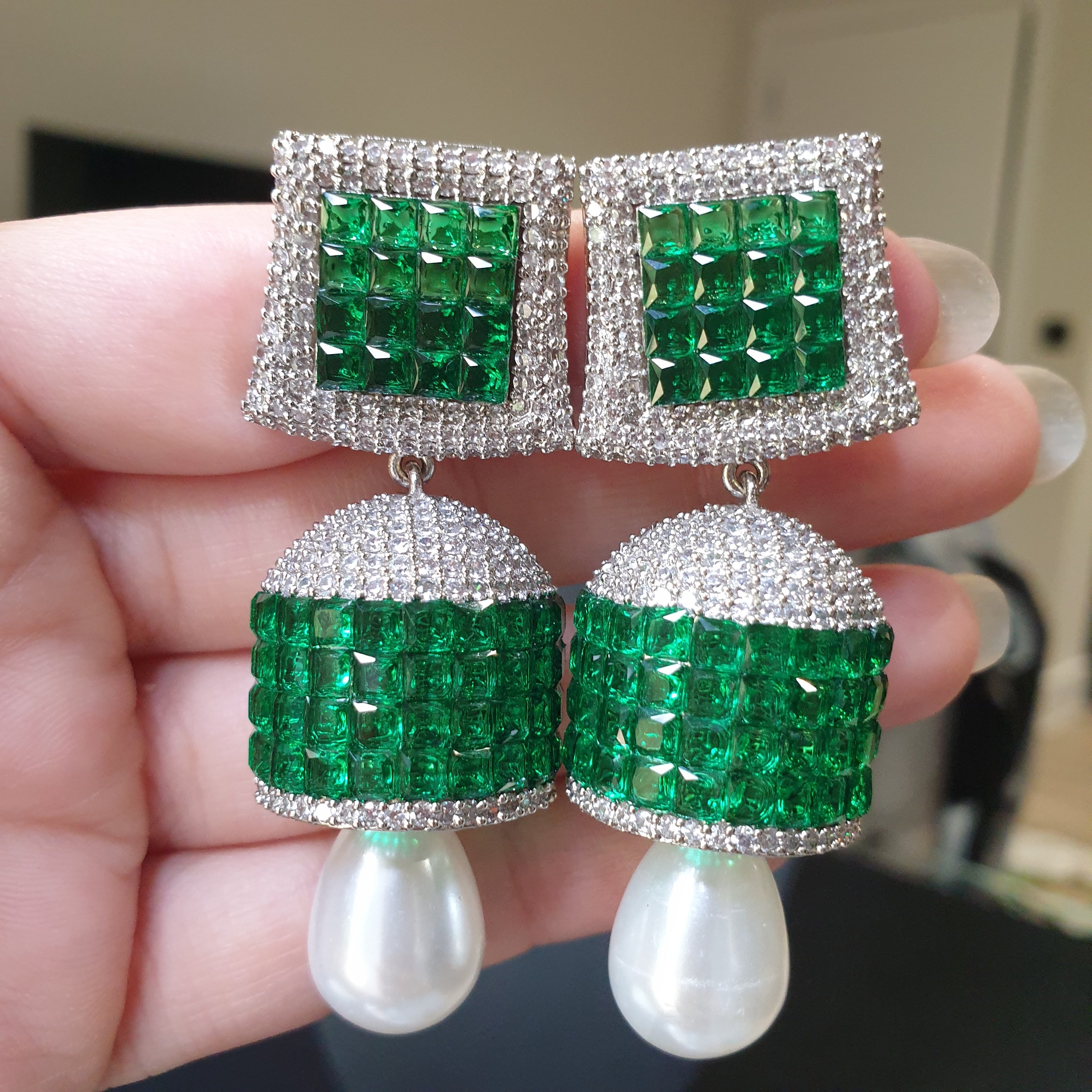 Turn heads with these exquisite emerald green earrings, designed to bring timeless beauty and sophistication to any outfit. Each vibrant green stone is perfectly complemented by brilliant cubic zirconia accents, creating a sparkling contrast that radiates elegance.