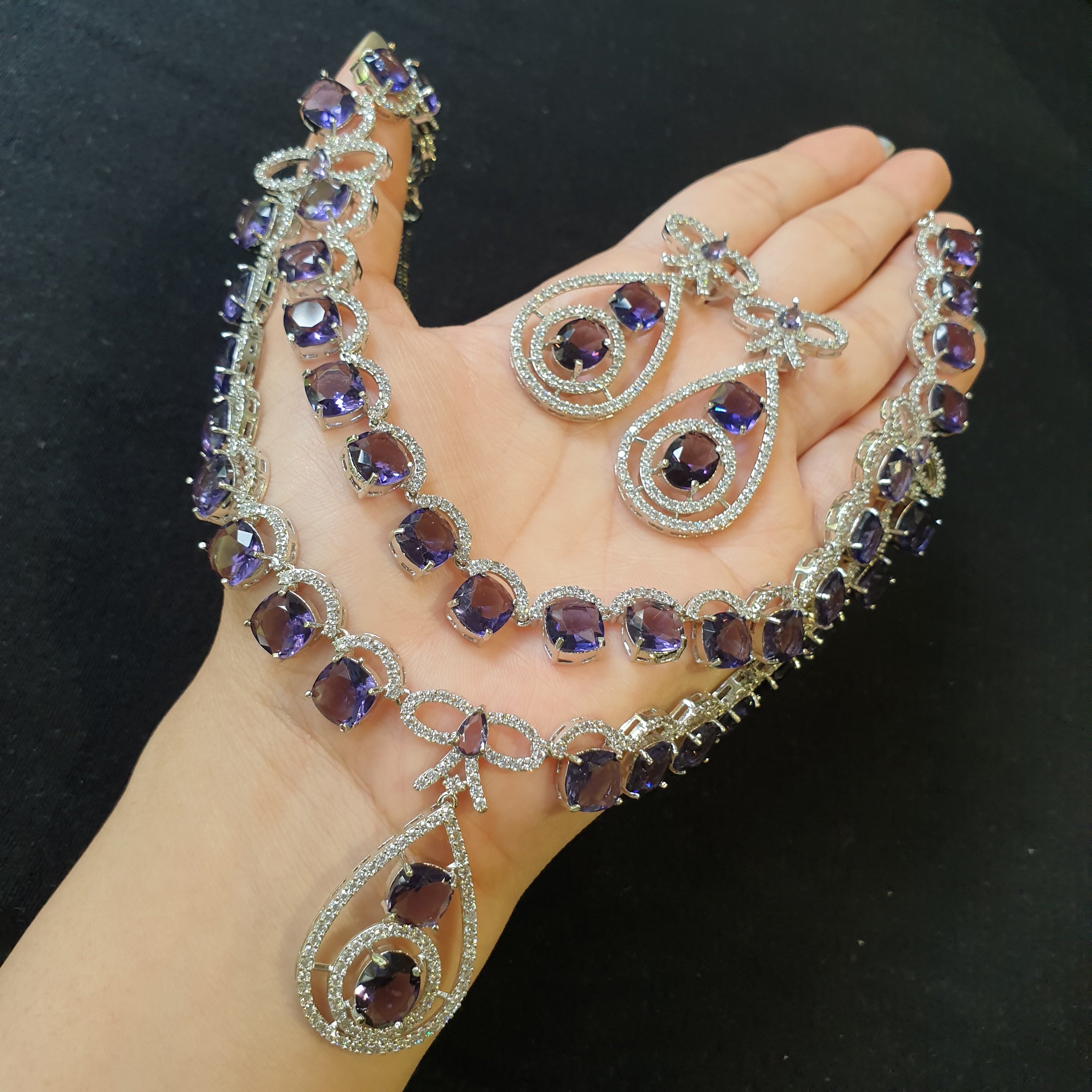 Elevate your look with the refined sparkle of this Purple Amethyst Necklace Set. Designed with multiple shimmering amethyst stones, each delicately accented by brilliant cubic zirconia, this set offers a perfect balance of color, radiance, and sophistication.