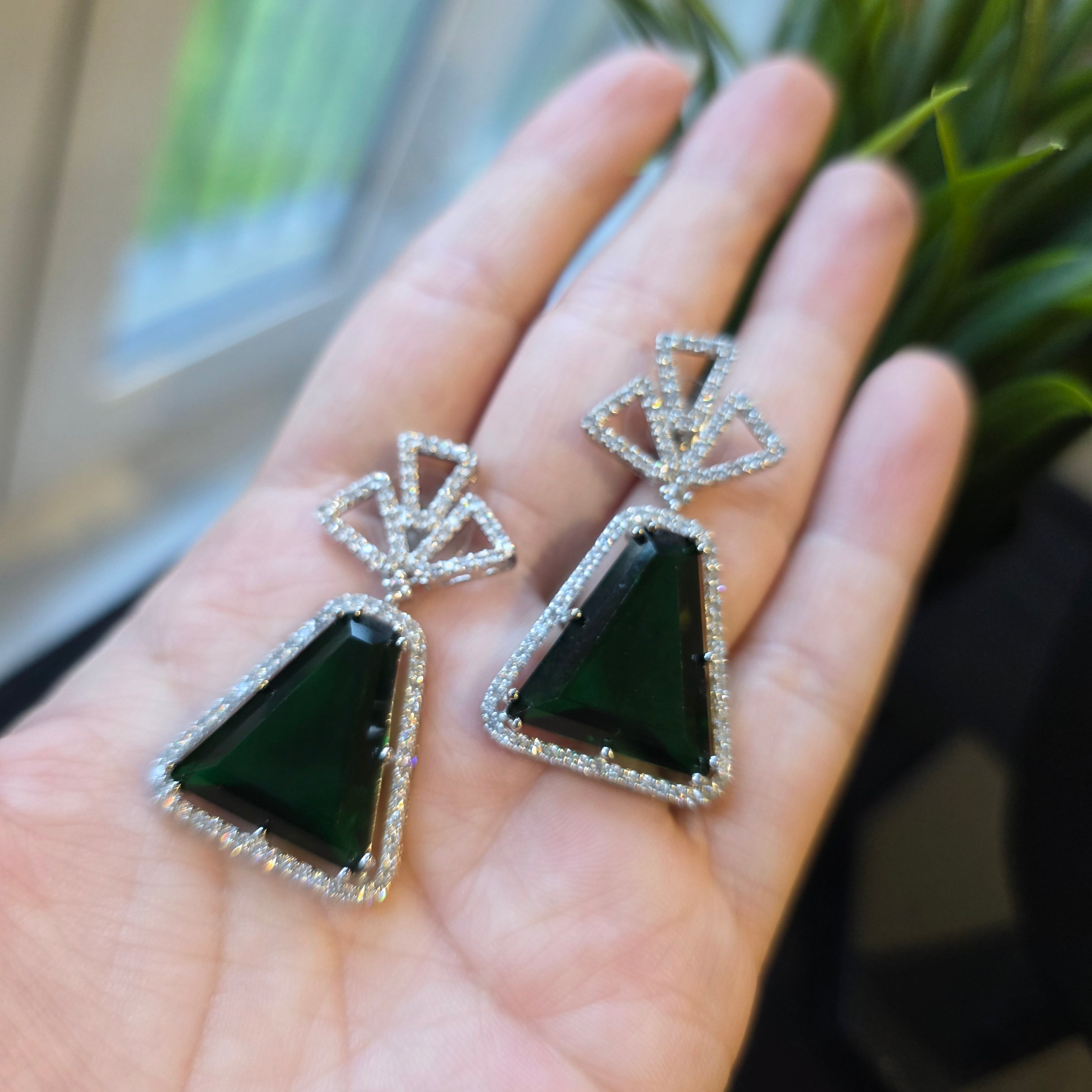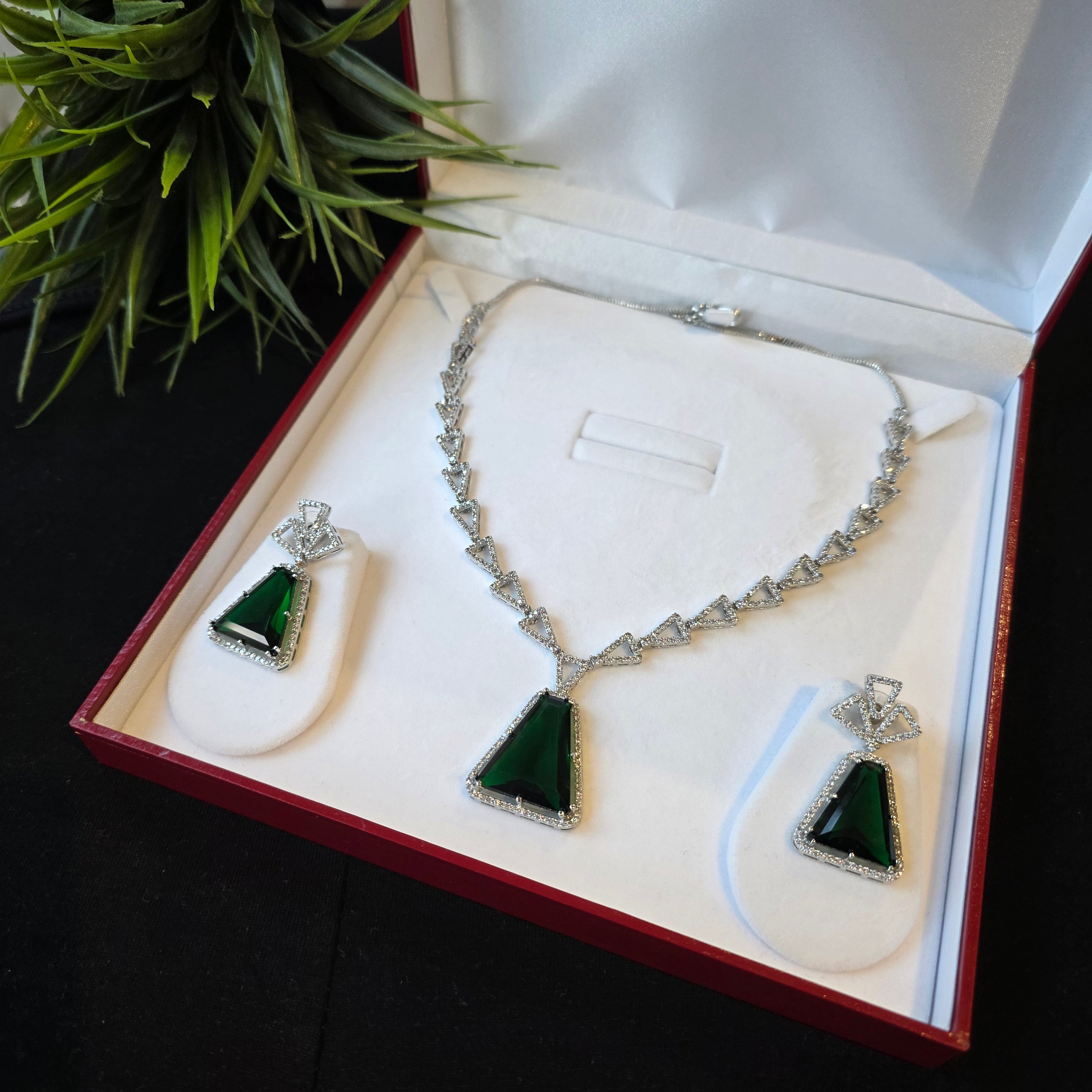 Bespoke Vibrant Emerald Green Necklace Set with Earrings. Comes with White Gold & Rhodium electroplating making it rust resistant.