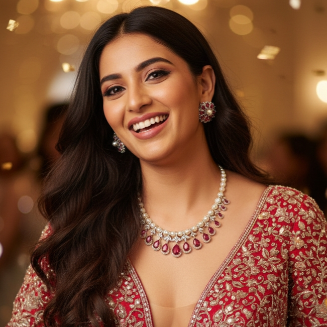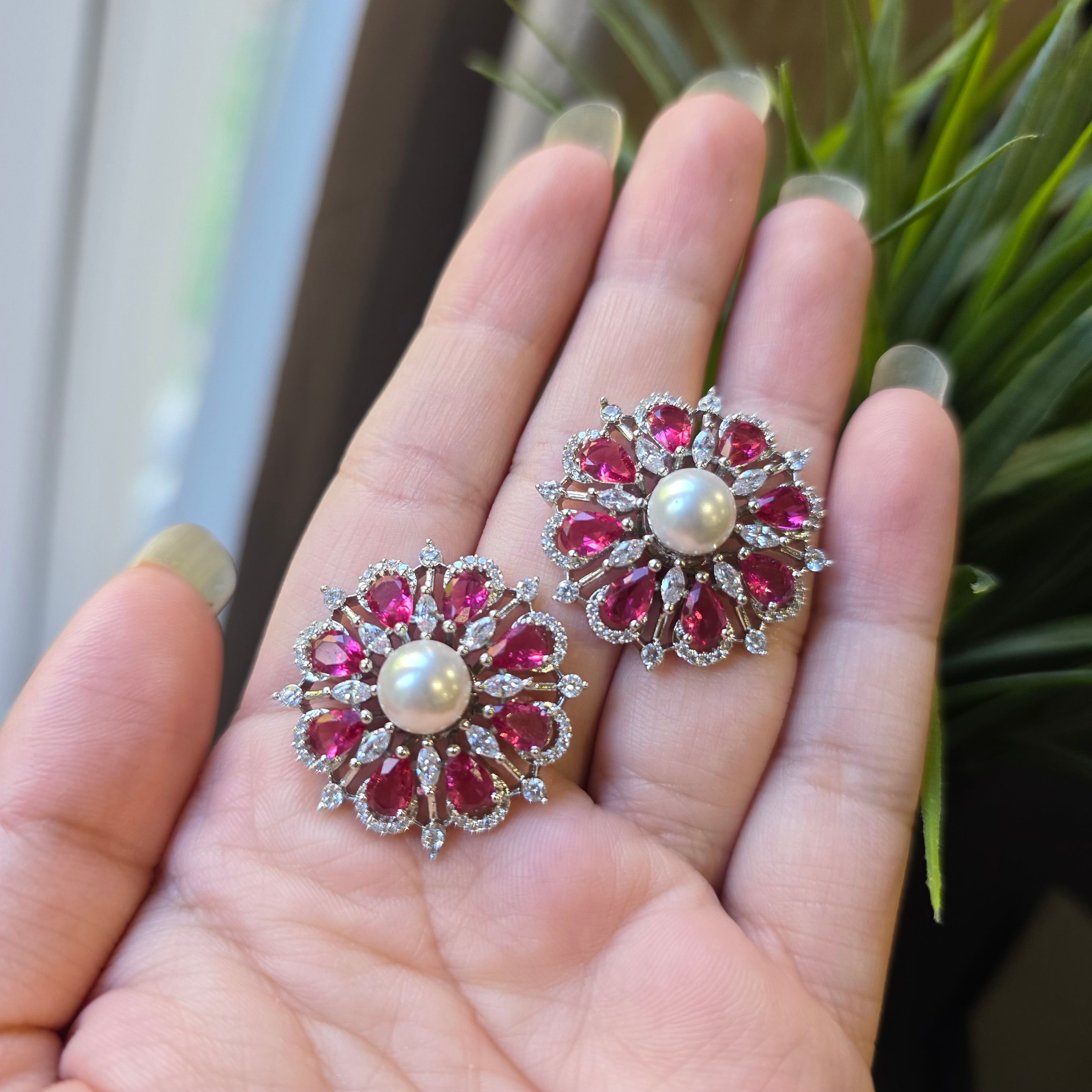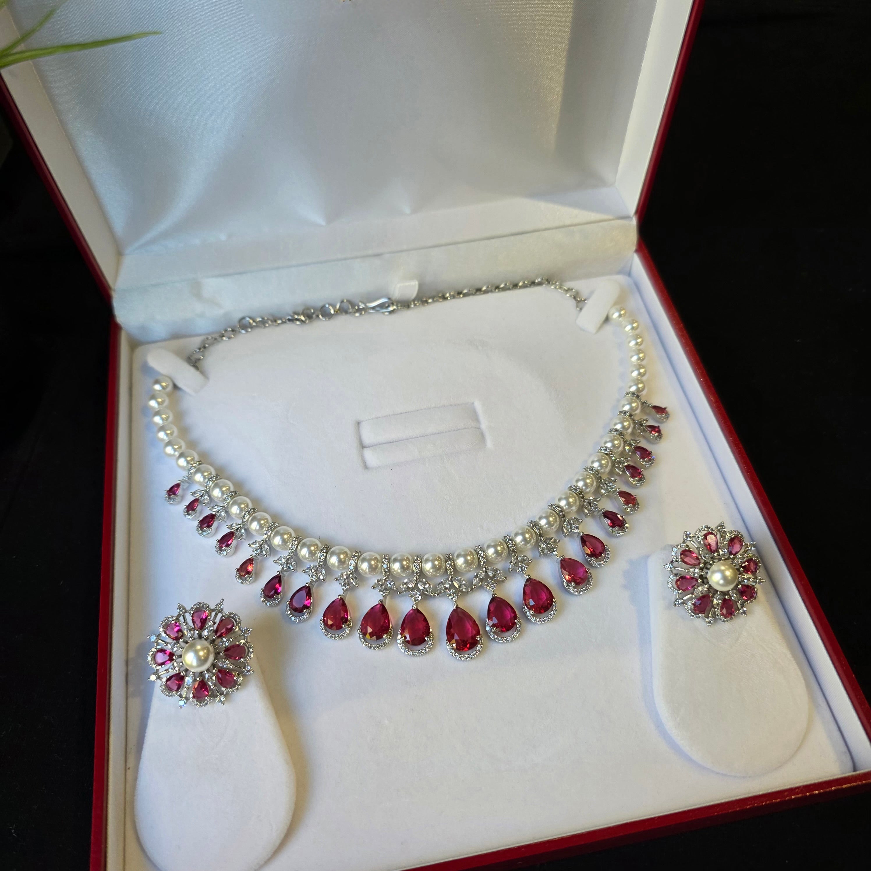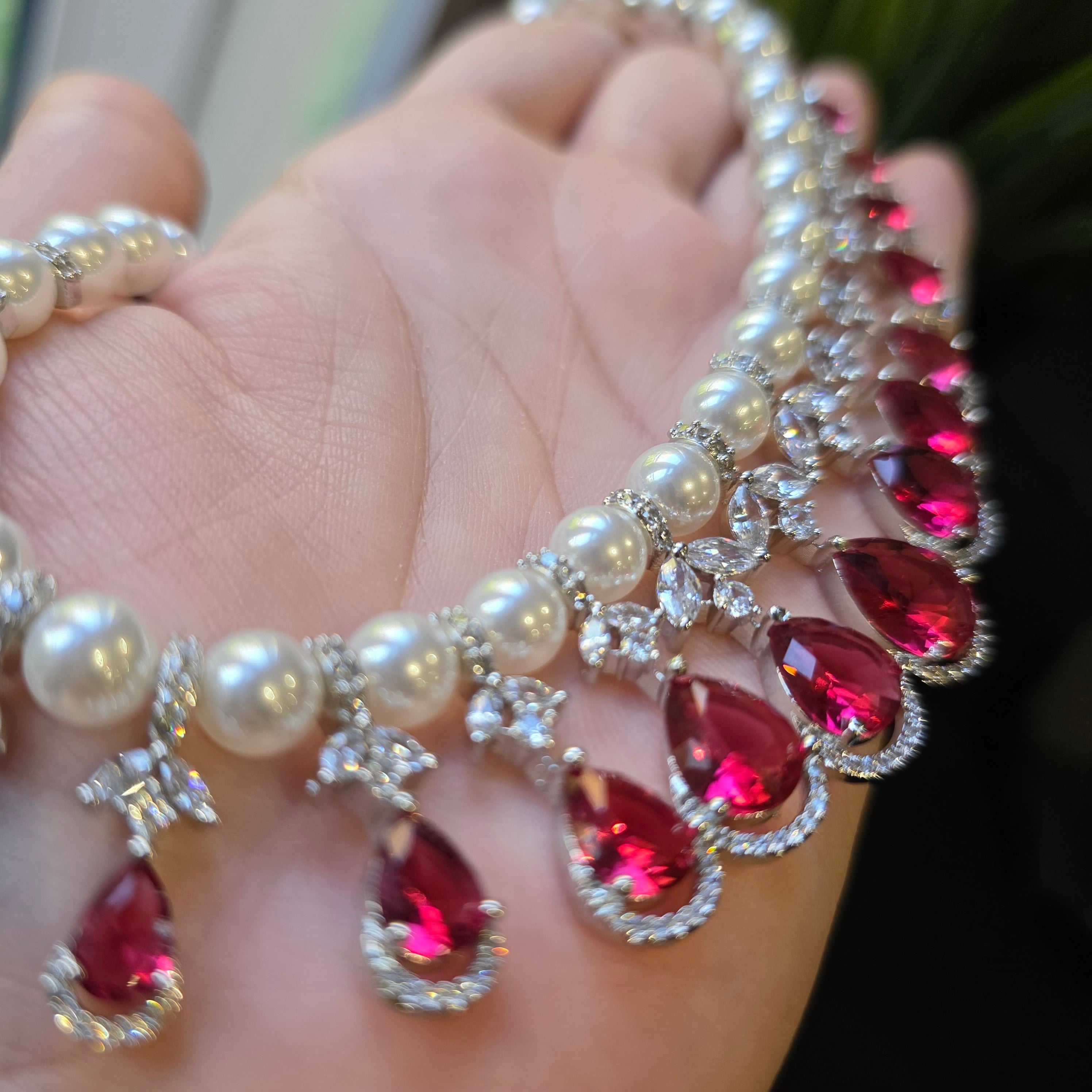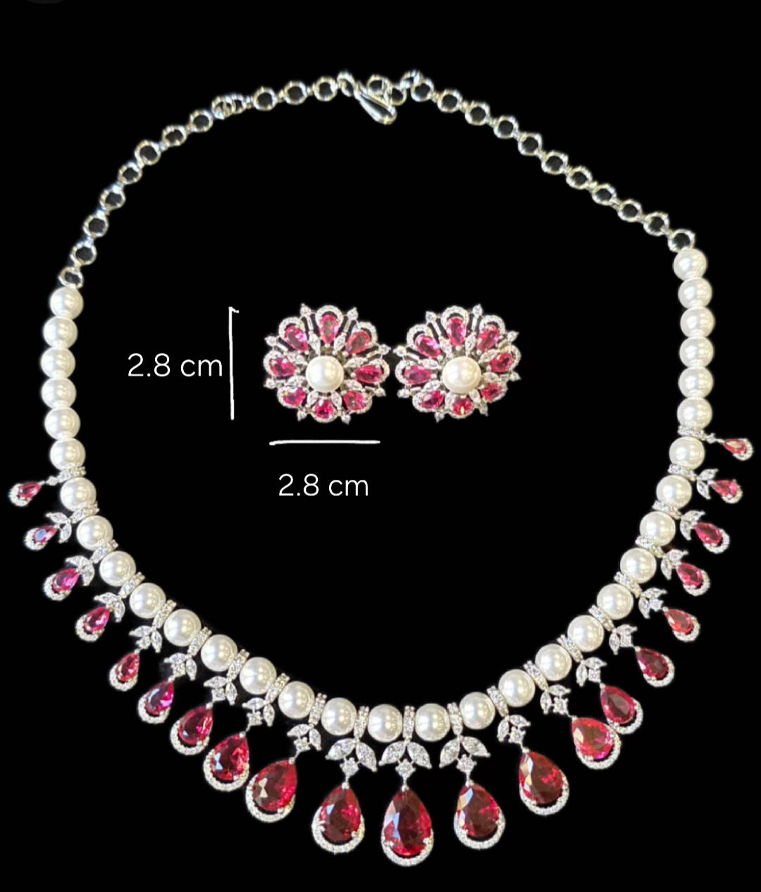 Introducing Timeless piece featuring stunning Blue Sapphires (lab-made) and luxurious Pearls studded Necklace paired with matching Earrings (Studs).