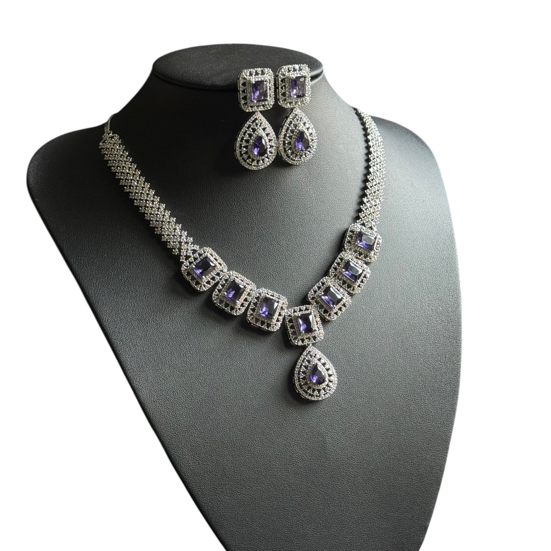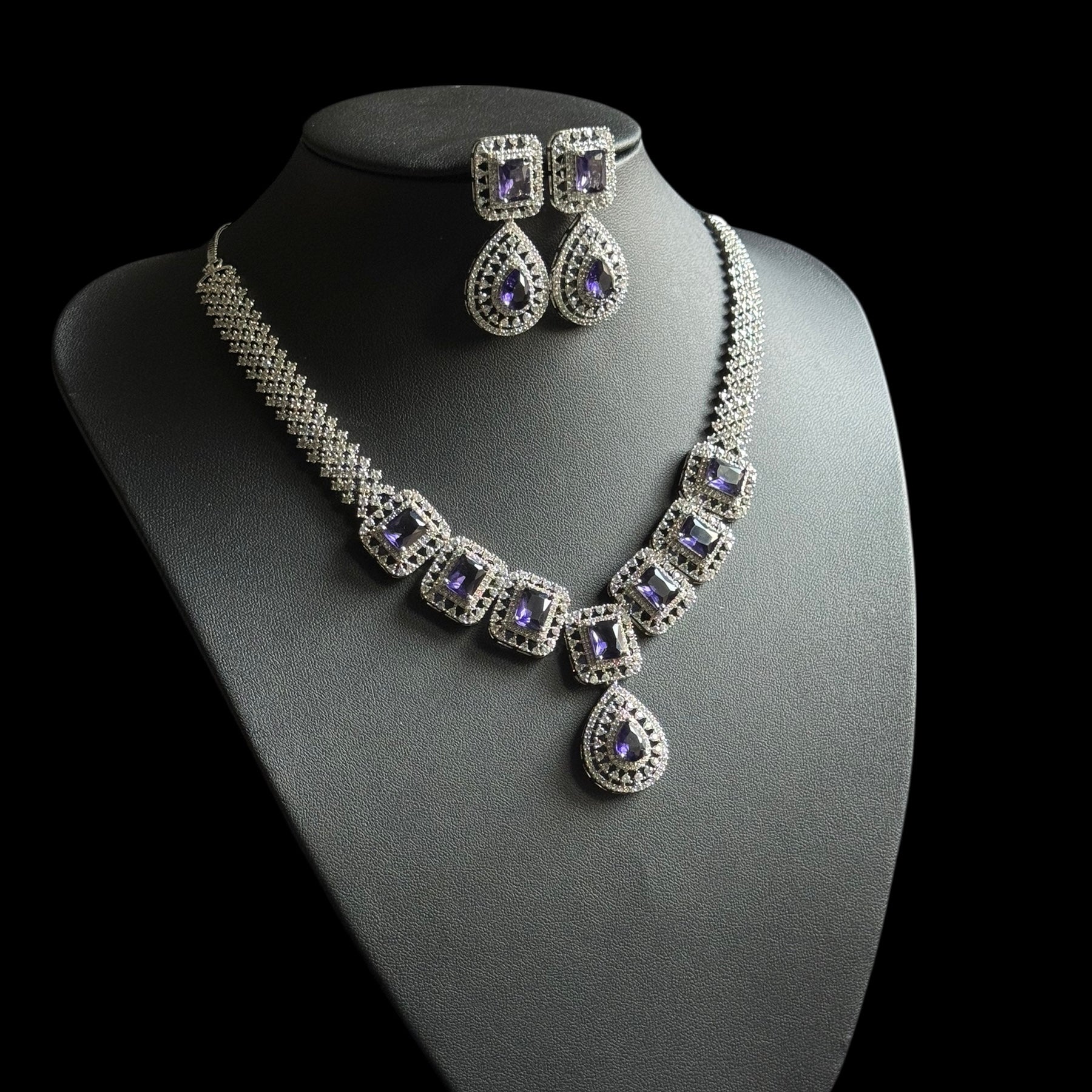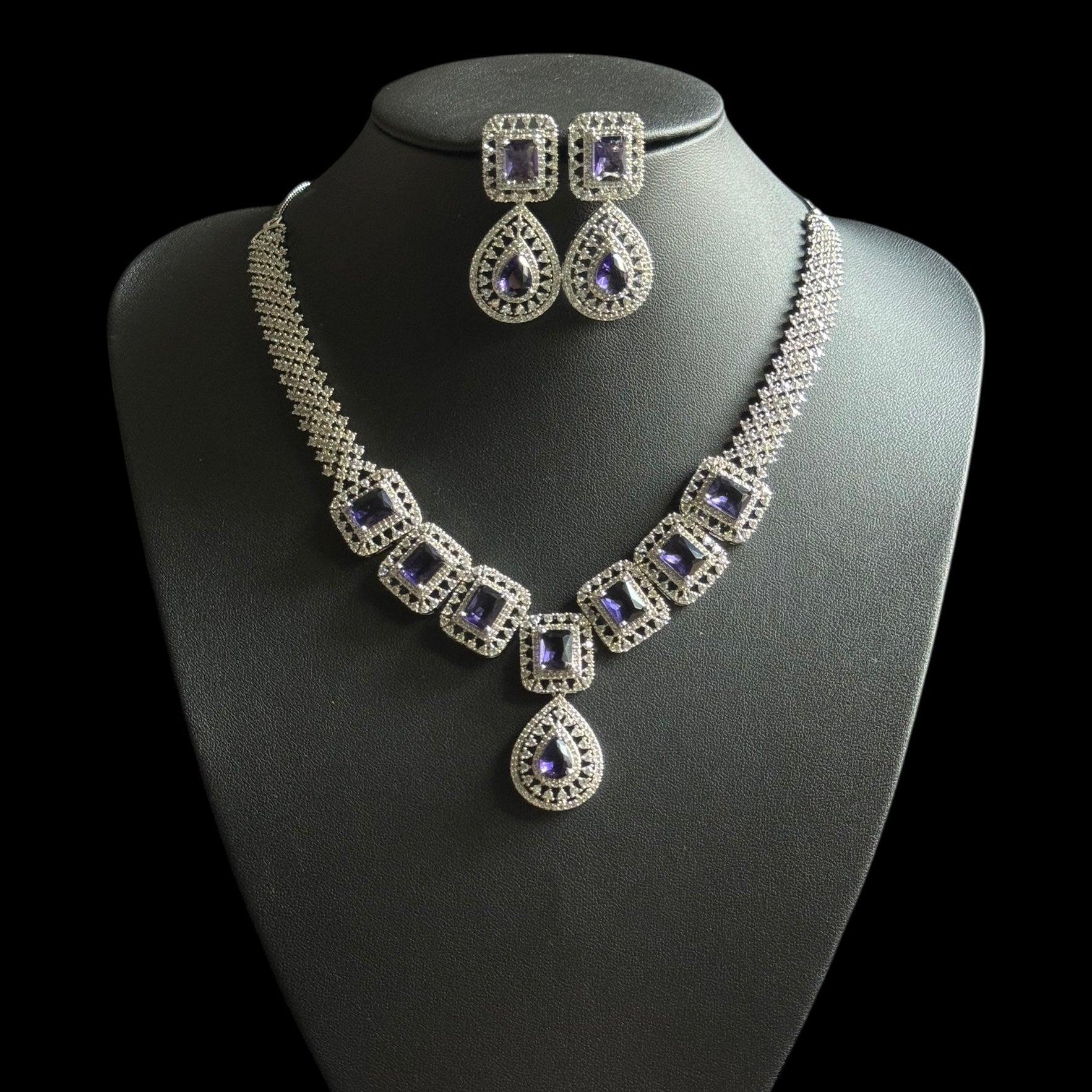 Elevate your elegance with this stunning purple amethyst necklace set, beautifully accented with sparkling cubic zirconia crafted with precision