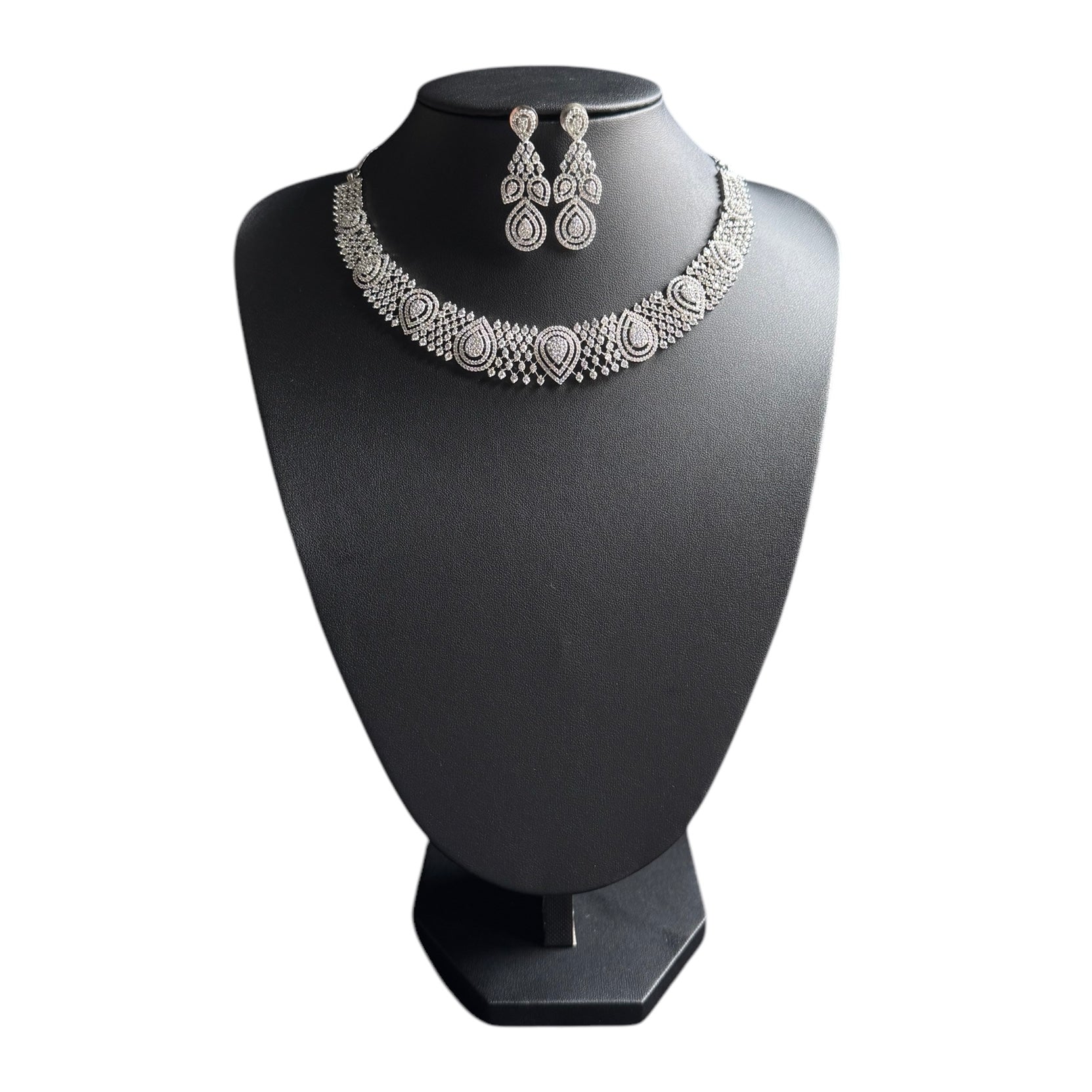 Add timeless elegance to your jewelry collection with this stunning white gold plated necklace set, featuring brilliant cubic zirconia stones that offer the sparkle and sophistication of real diamonds. Designed for versatility, this set is perfect for weddings, special occasions, or everyday glamour.