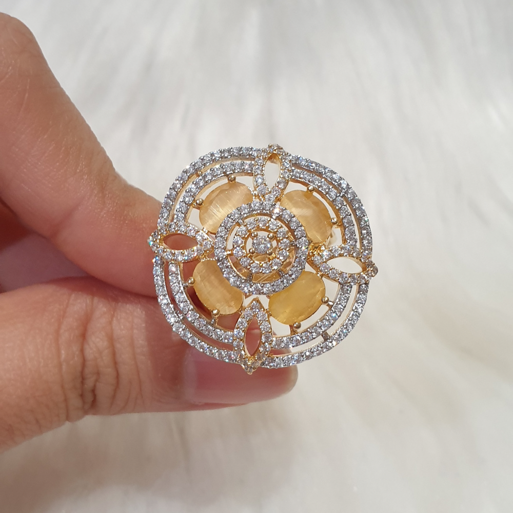 White and Yellow Gold Plated Size Adjustable Ring with Yellow Topaz and Cubic Zirconia.